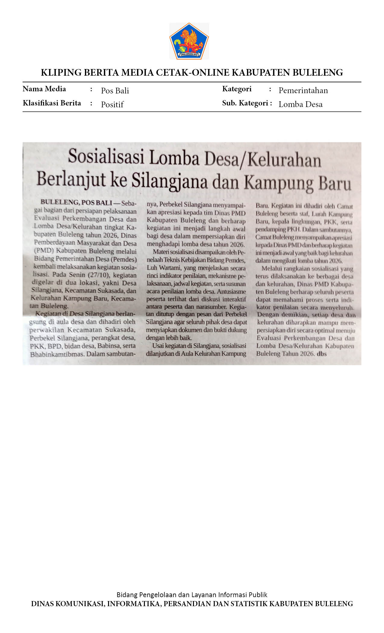 SOSIALISASI LOMBA DESA/KELURAHAN BERLANJUT KE SILANGJANA DAN KAMPUNG BARU