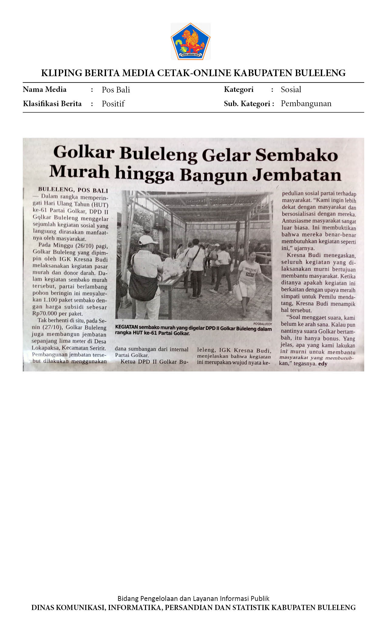 GOLKAR BULELENG GELAR SEMBAKO MURAH HINGGA BANGUN JEMBATAN