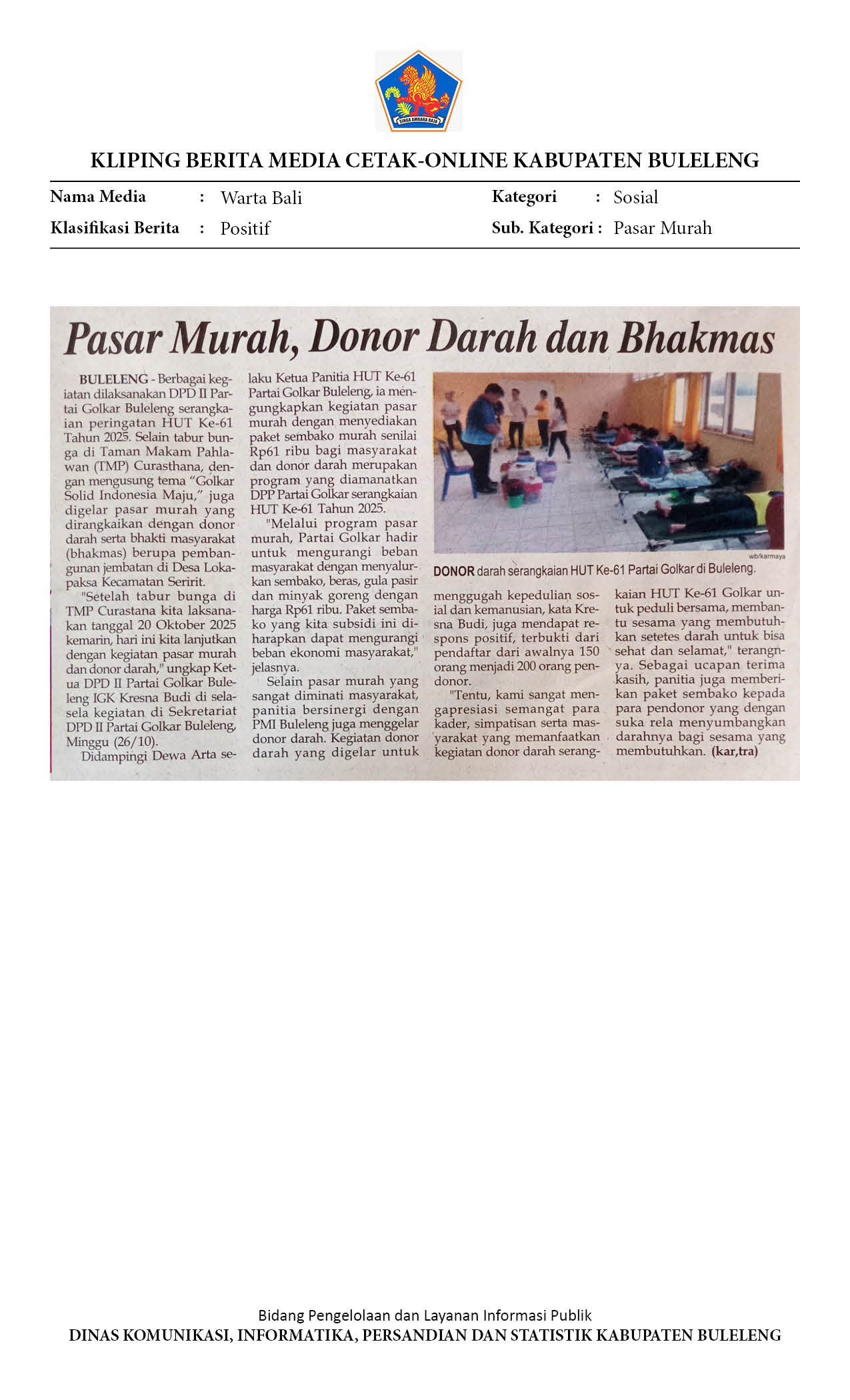 PASAR MURAH, DONOR DARAH DAN BHAKMAS