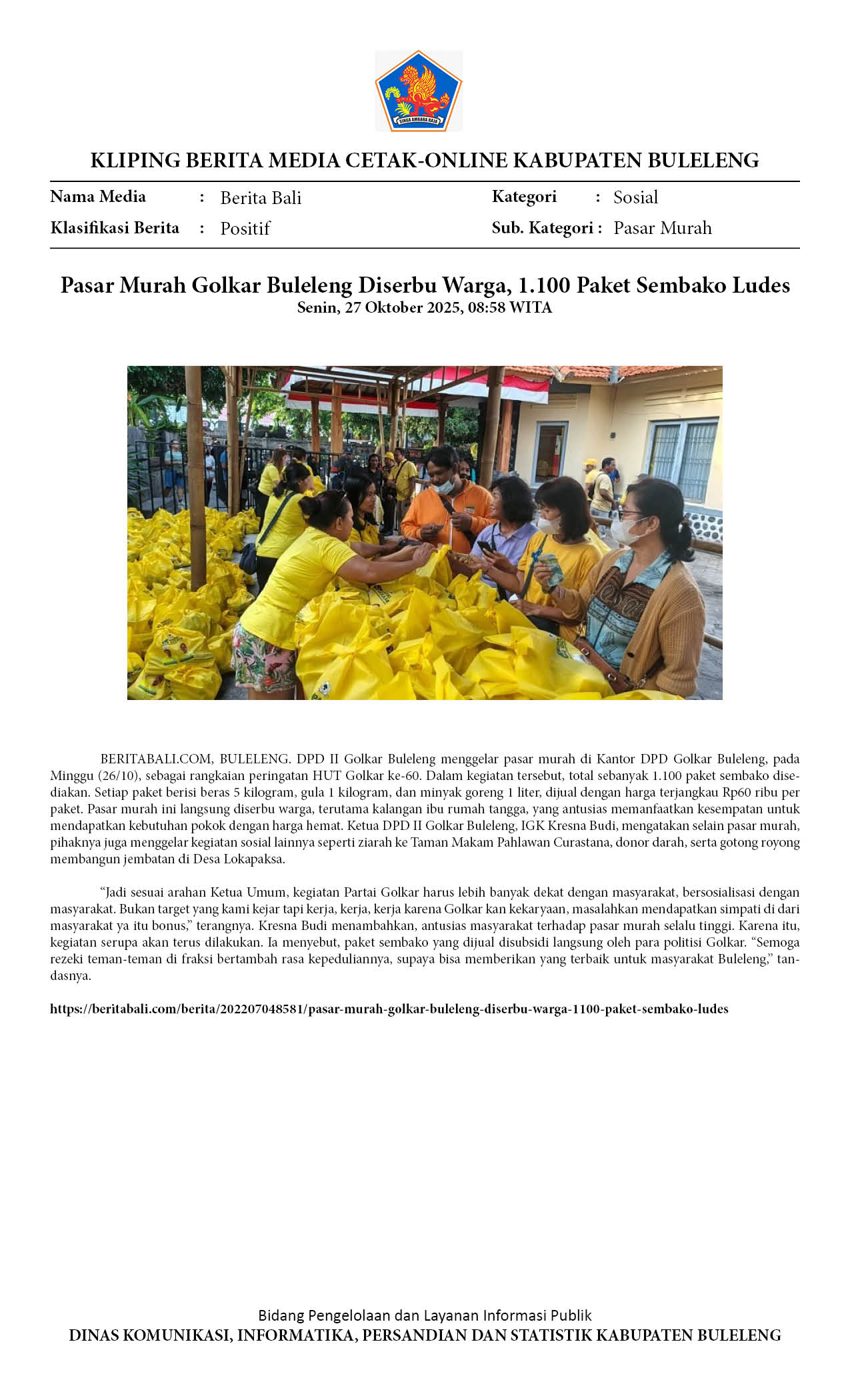 PASAR MURAH GOLKAR BULELENG DISERBU WARGA, 1.100 PAKET SEMBAKO LUDES