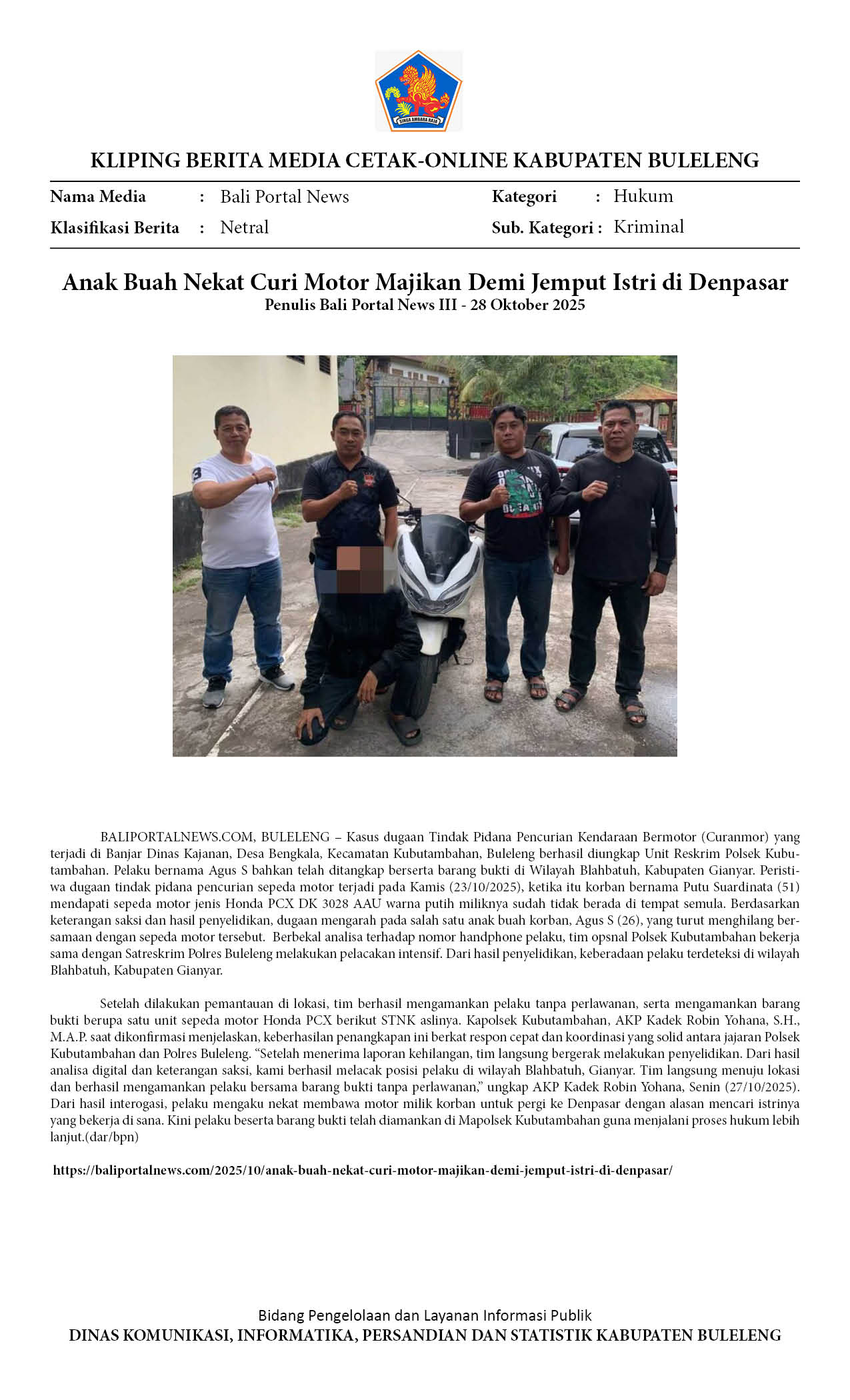 ANAK BUAH NEKAT CURI MOTOR MAJIKAN DEMI JEMPUT ISTRI DI DENPASAR