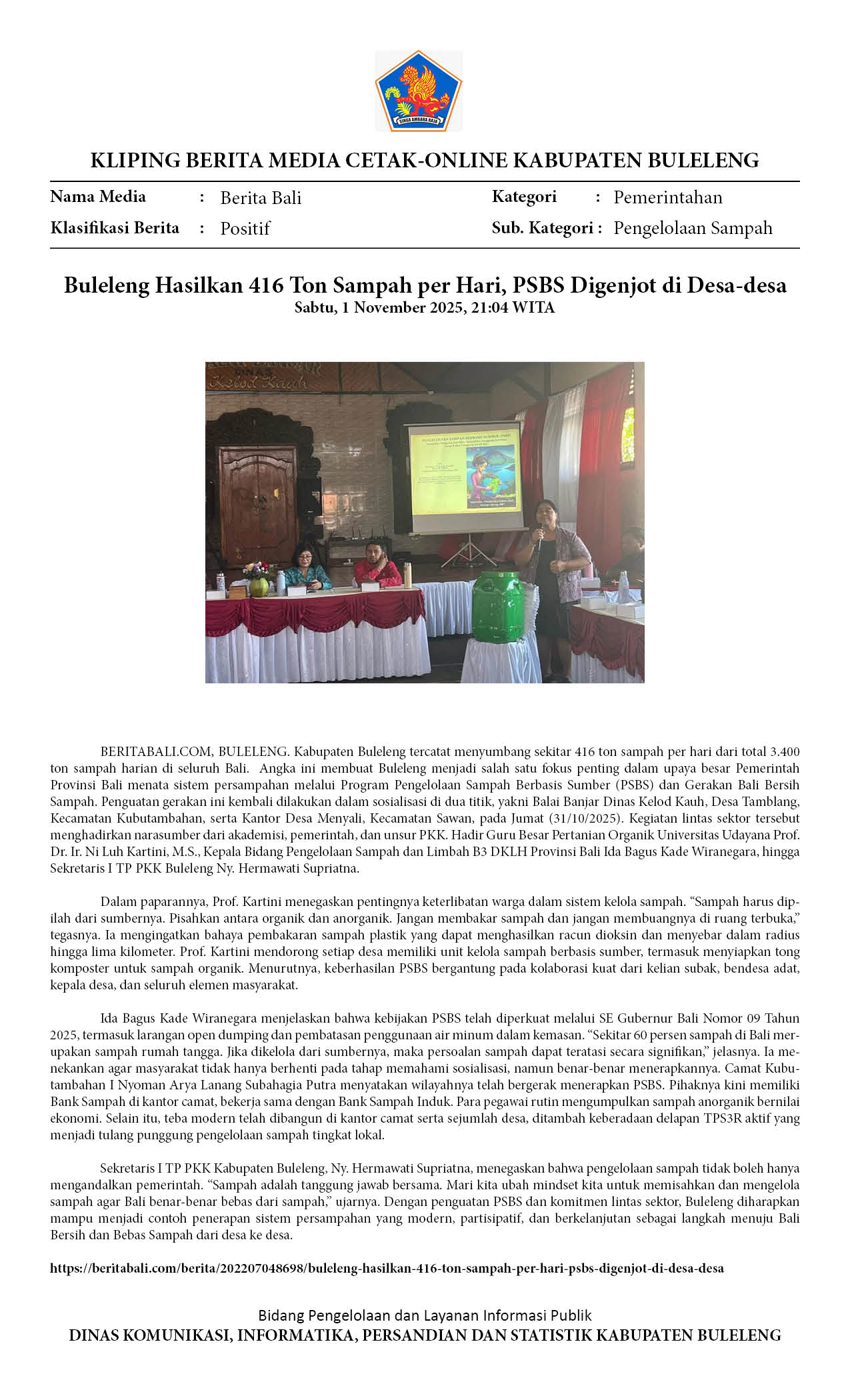 BULELENG HASILKAN 416 TON SAMPAH PER HARI, PSBS DIGENJOT DI DESA-DESA