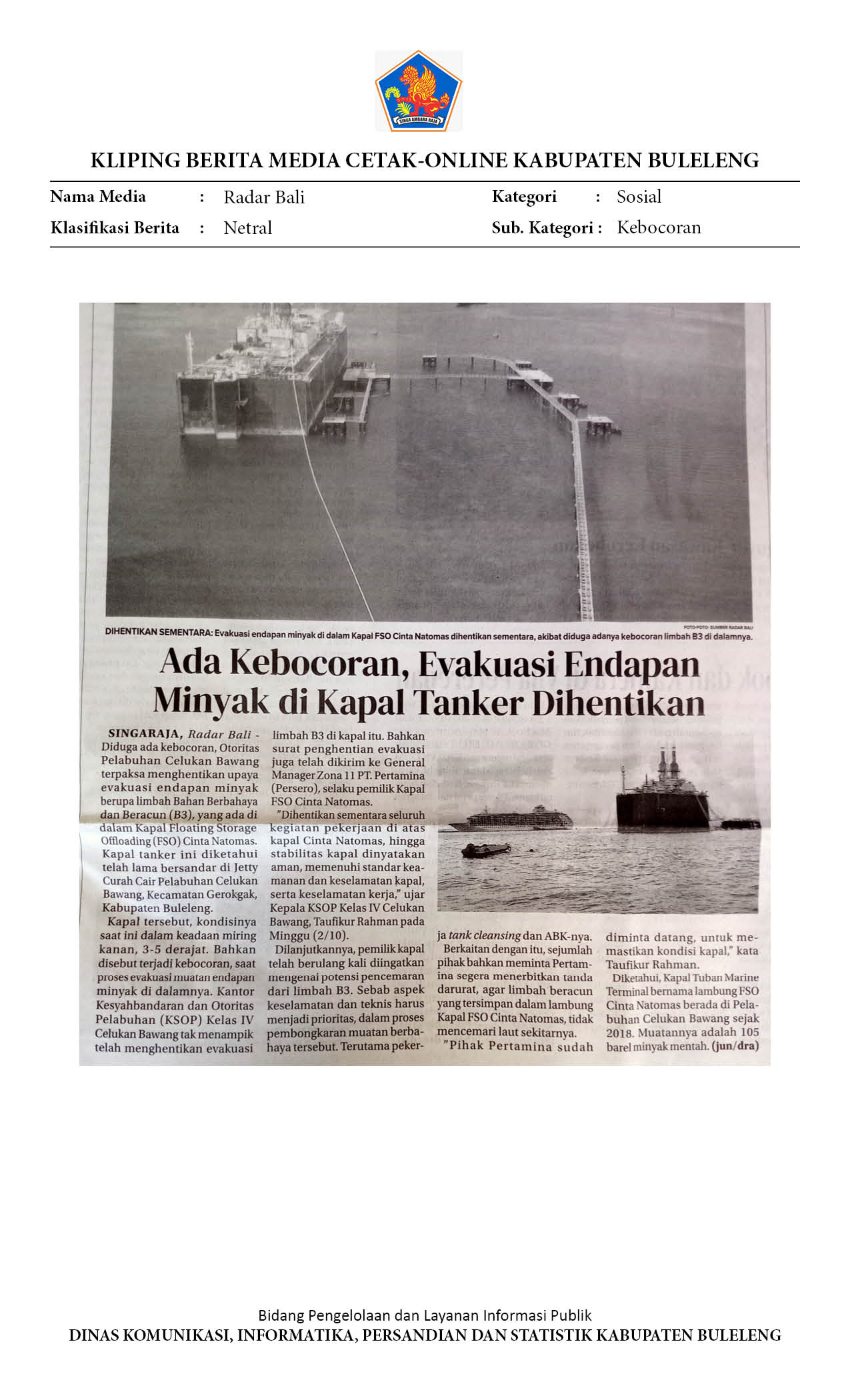 ADA KEBOCORAN, EVAKUASI ENDAPAN MINYAK DI KAPAL TANKER DIHENTIKAN