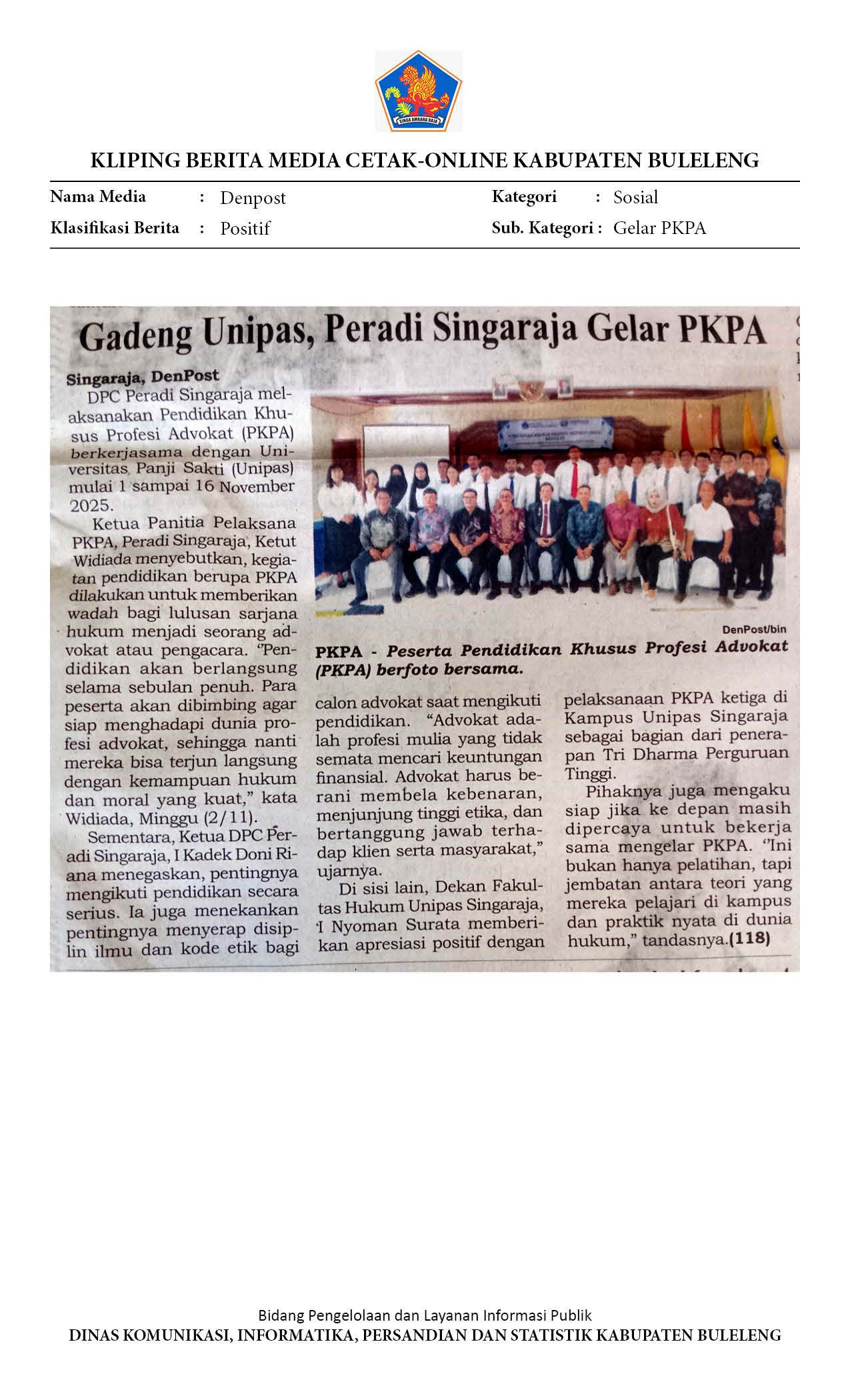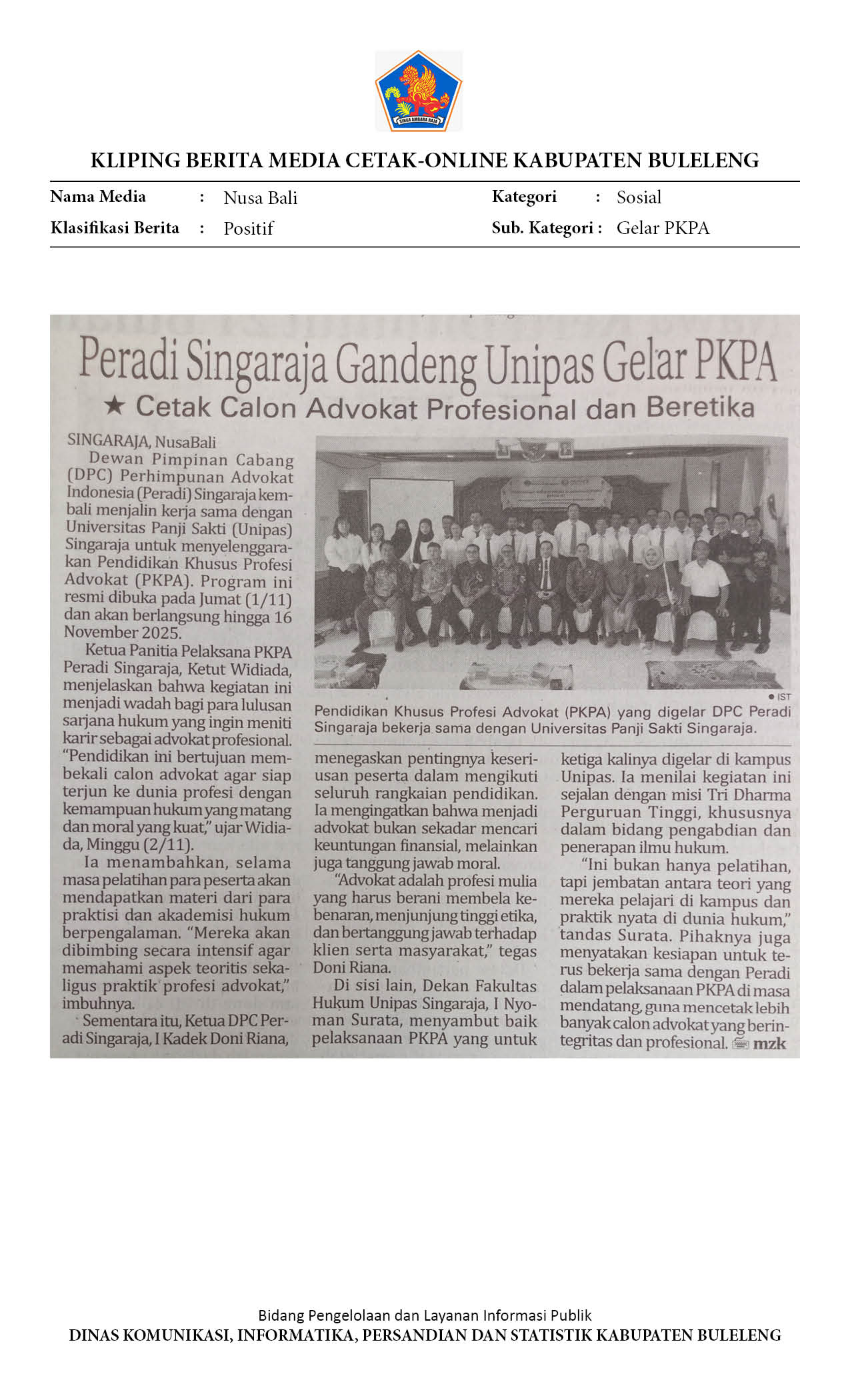 PERADI SINGARAJA KEMBALI GANDENG UNIPAS GELAR PKPA
