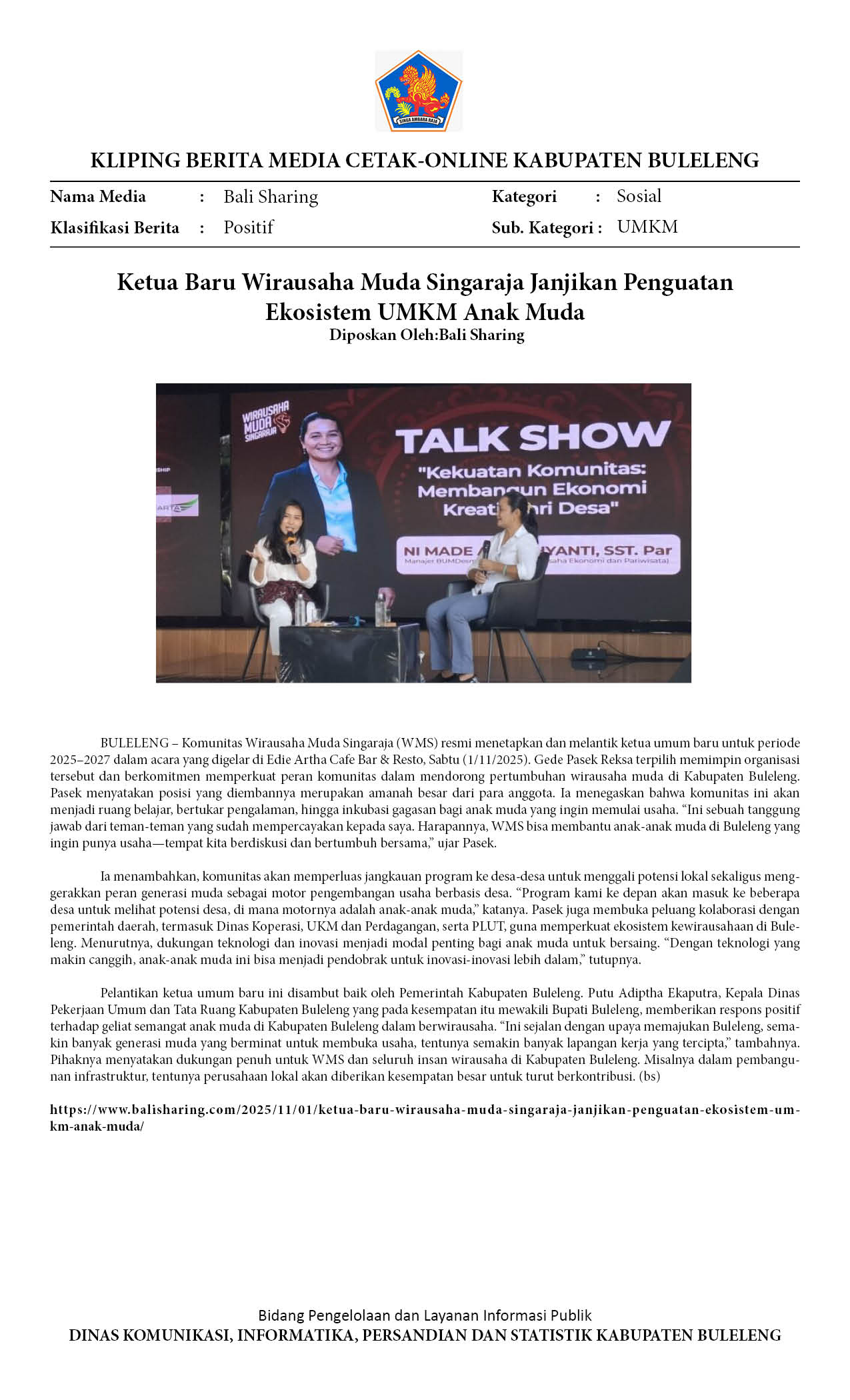 KETUA BARU WIRAUSAHA MUDA SINGARAJA JANJIKAN PENGUATAN EKOSISTEM UMKM ANAK MUDA