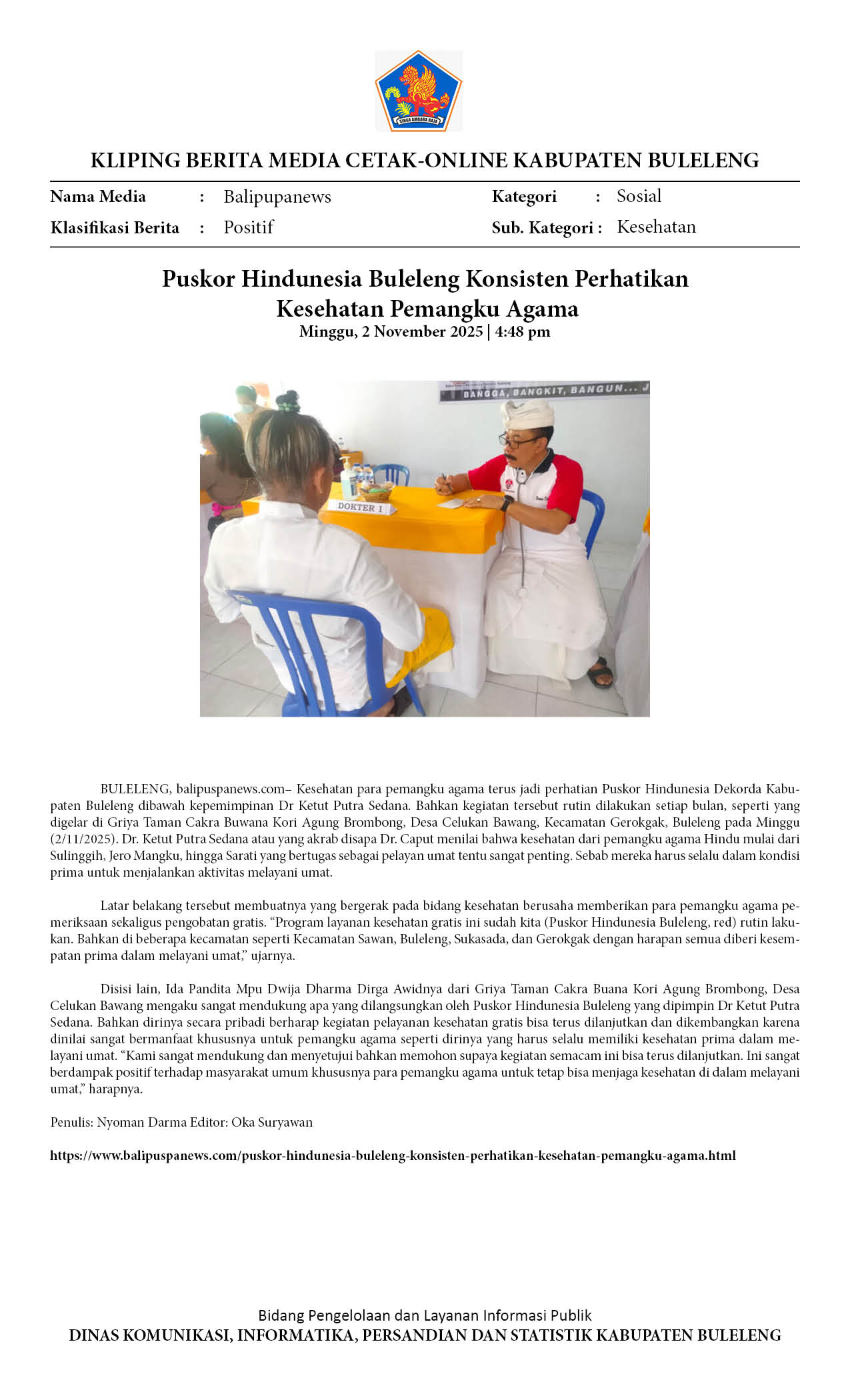 PUSKOR HINDUNESIA BULELENG KONSISTEN PERHATIKAN KESEHATAN PEMANGKU AGAMA