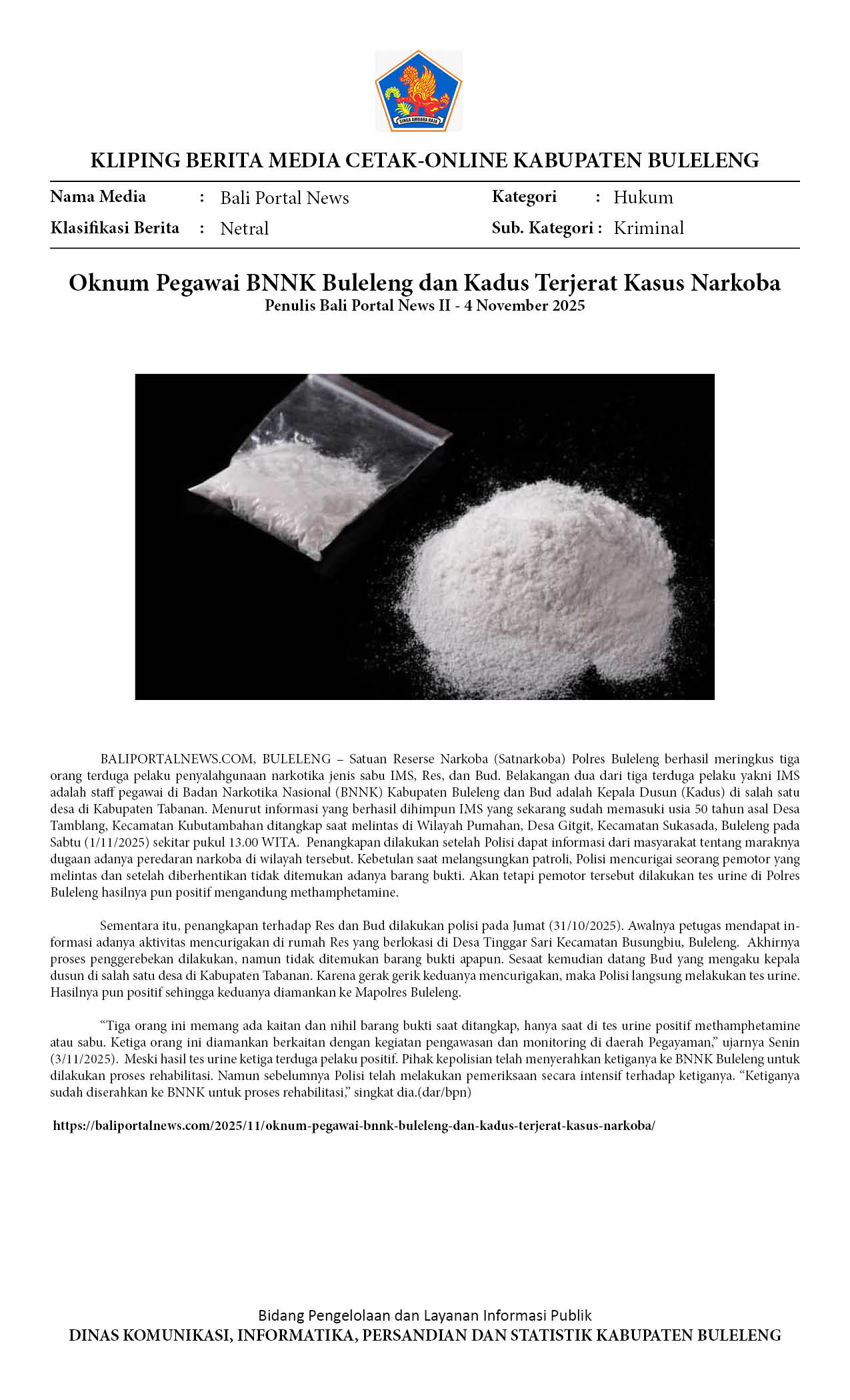 OKNUM PEGAWAI BNNK BULELENG DAN KADUS TERJERAT KASUS NARKOBA