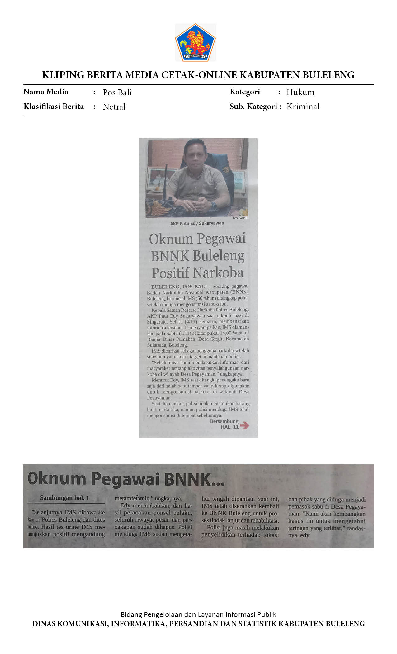 OKNUM PEGAWAI BNNK BULELENG POSITIF NARKOBA
