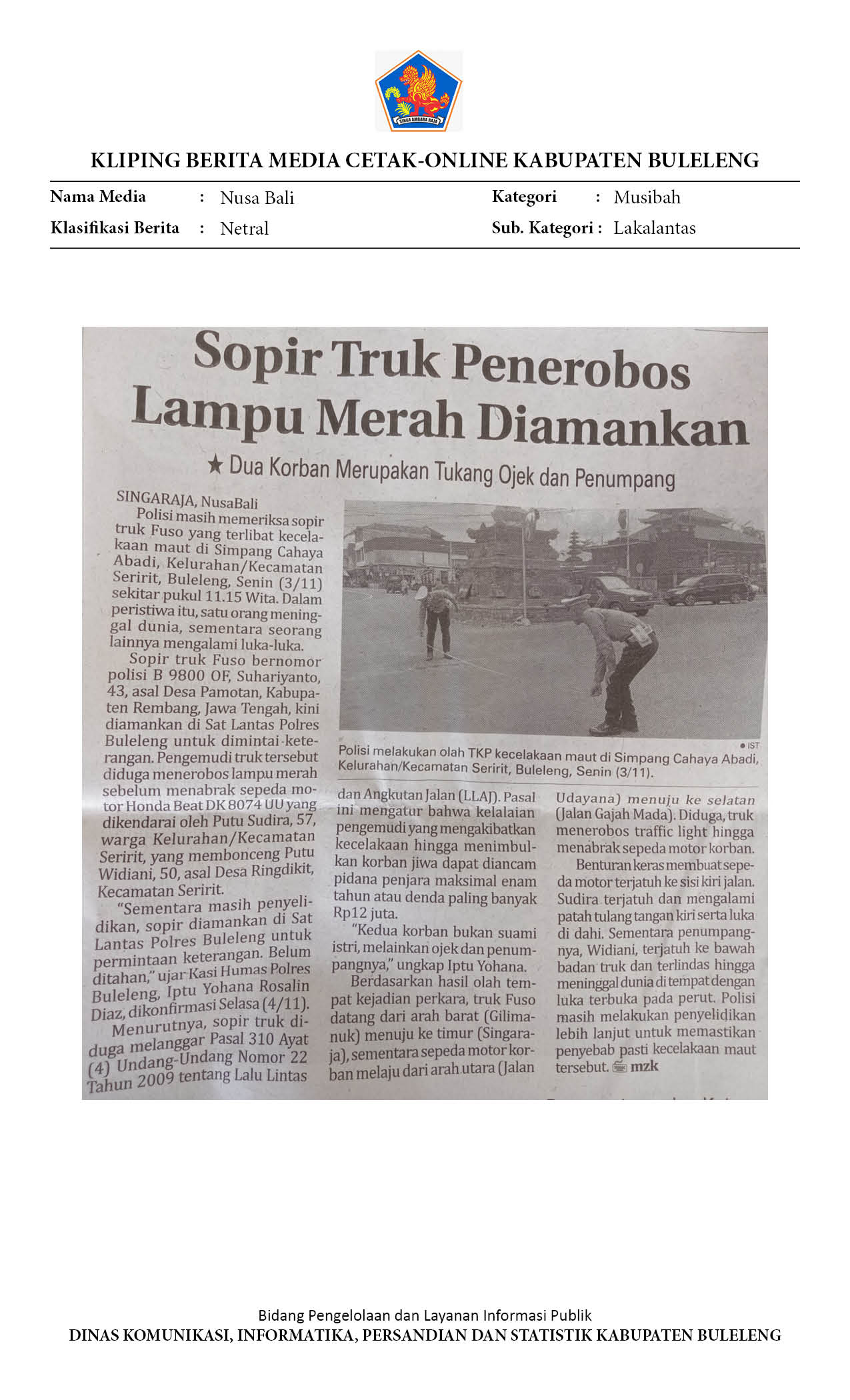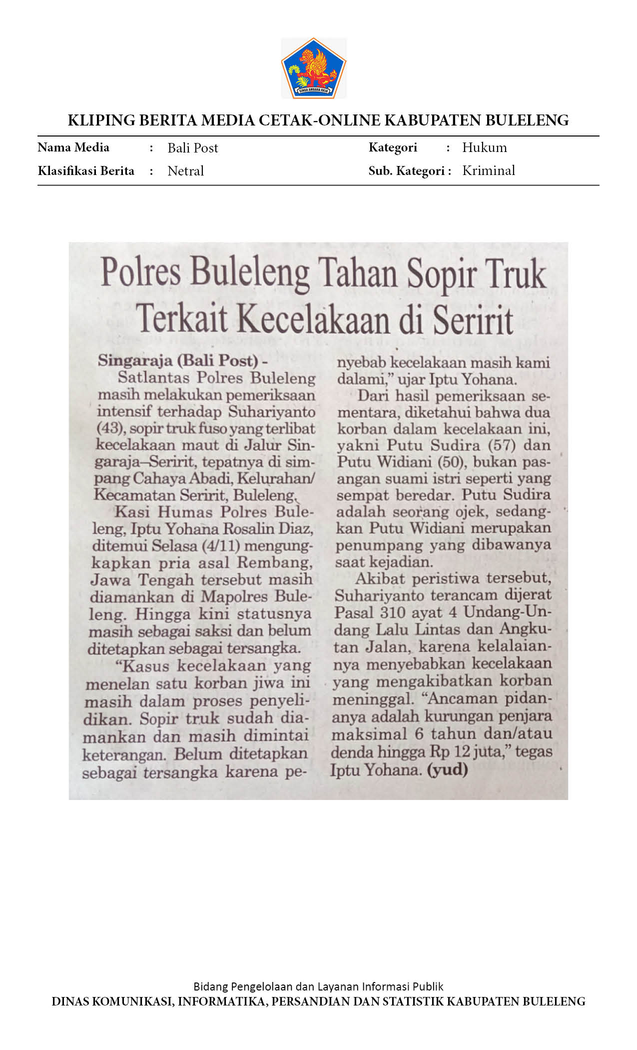 POLRES BULELENG TAHAN SOPIR TRUK TERKAIT KECELAKAAN DI SERIRIT