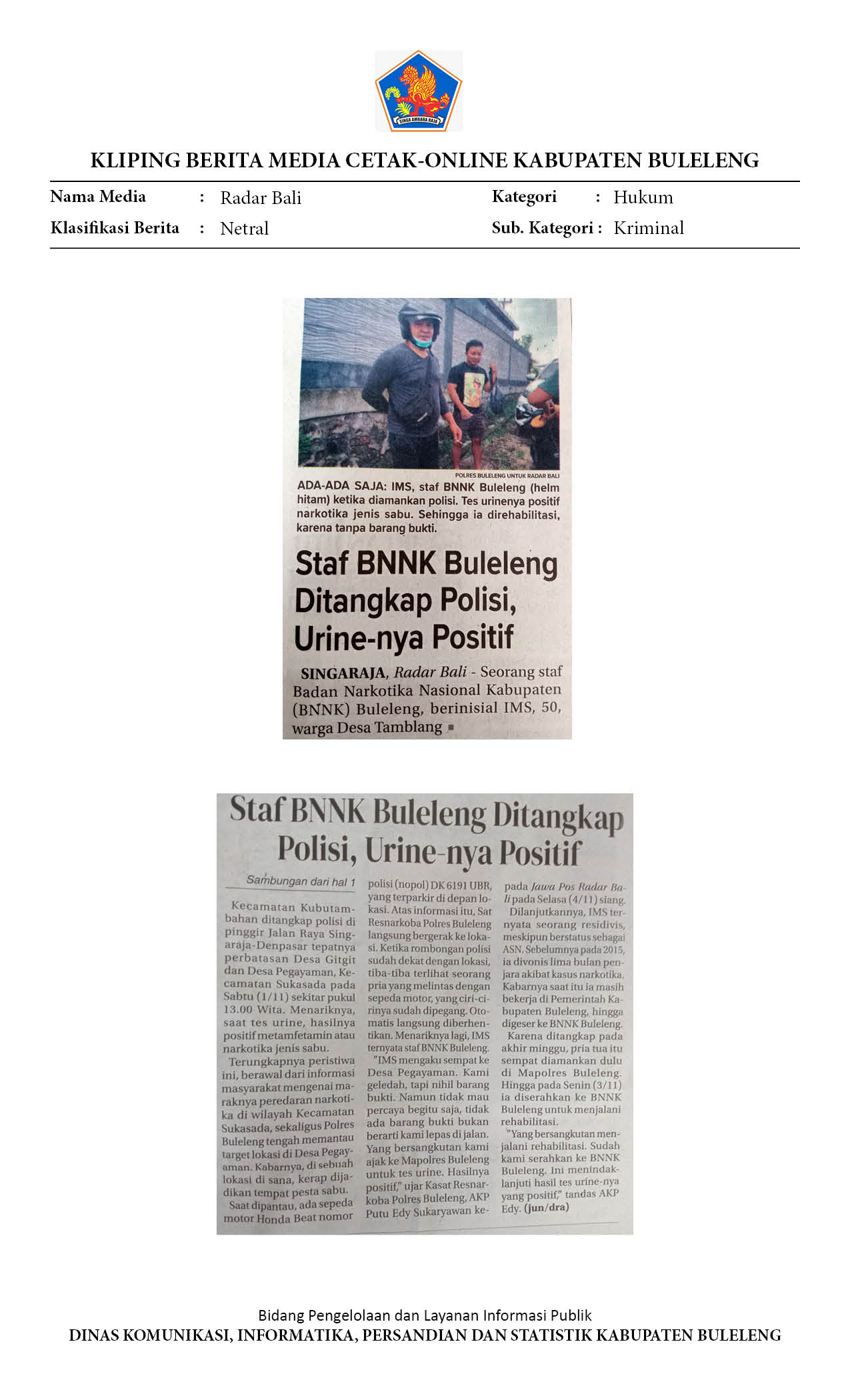 STAF BNNK BULELENG DITANGKAP POLISI, URINE-NYA POSITIF