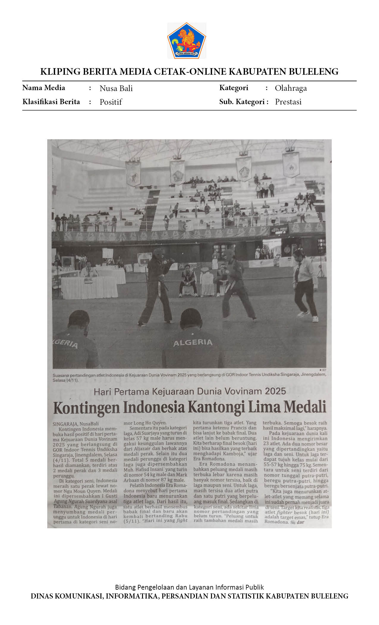 Kliping Kategori Olahraga Edisi 05 November 2025