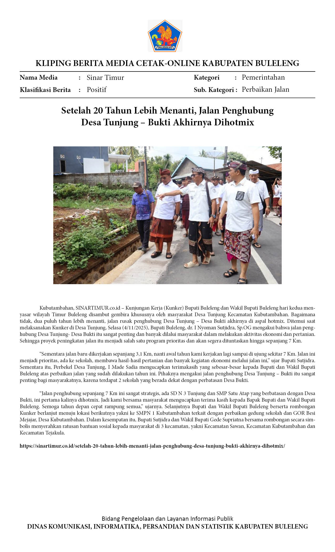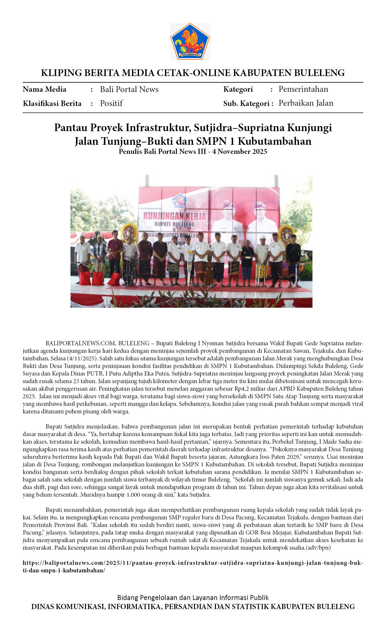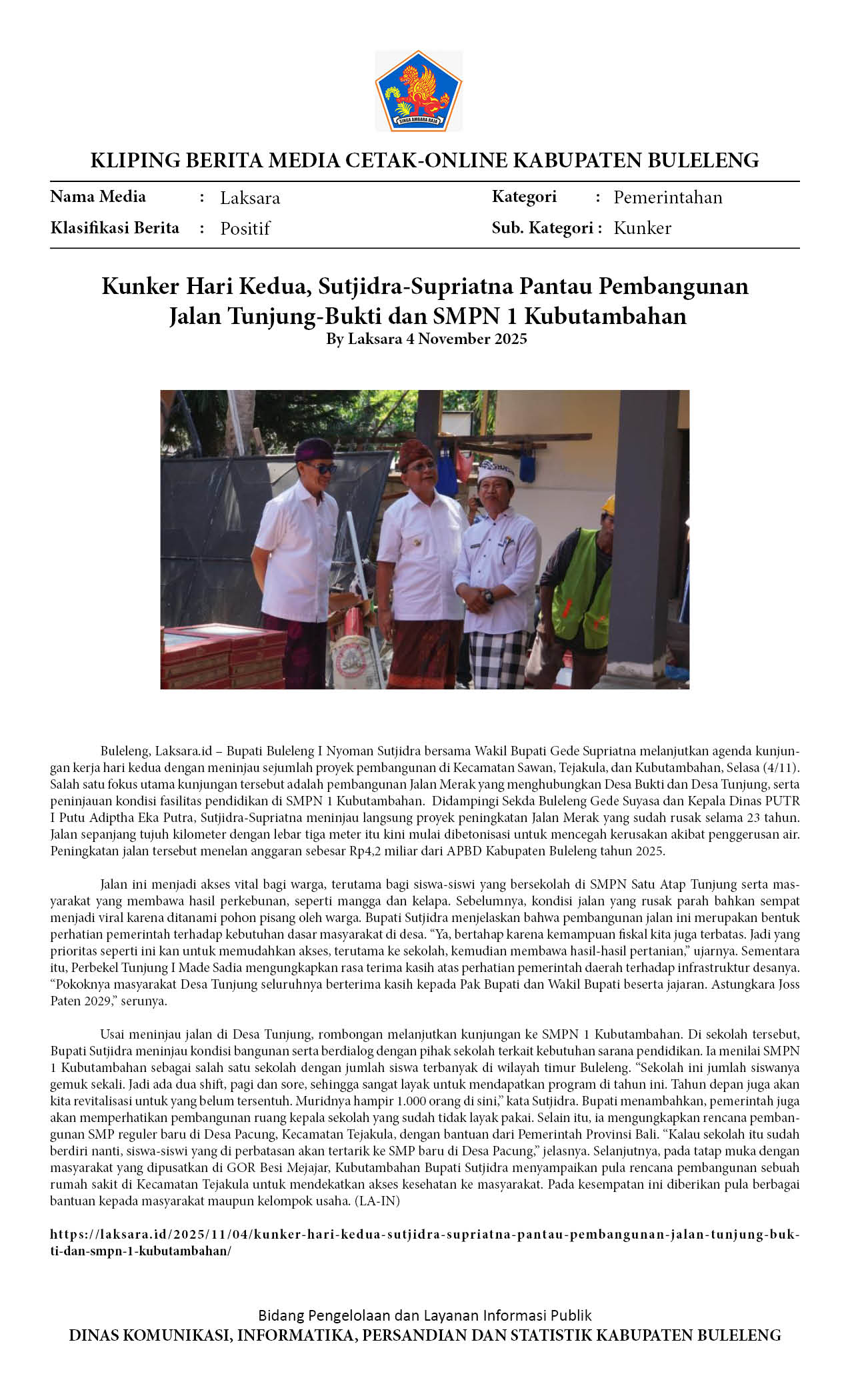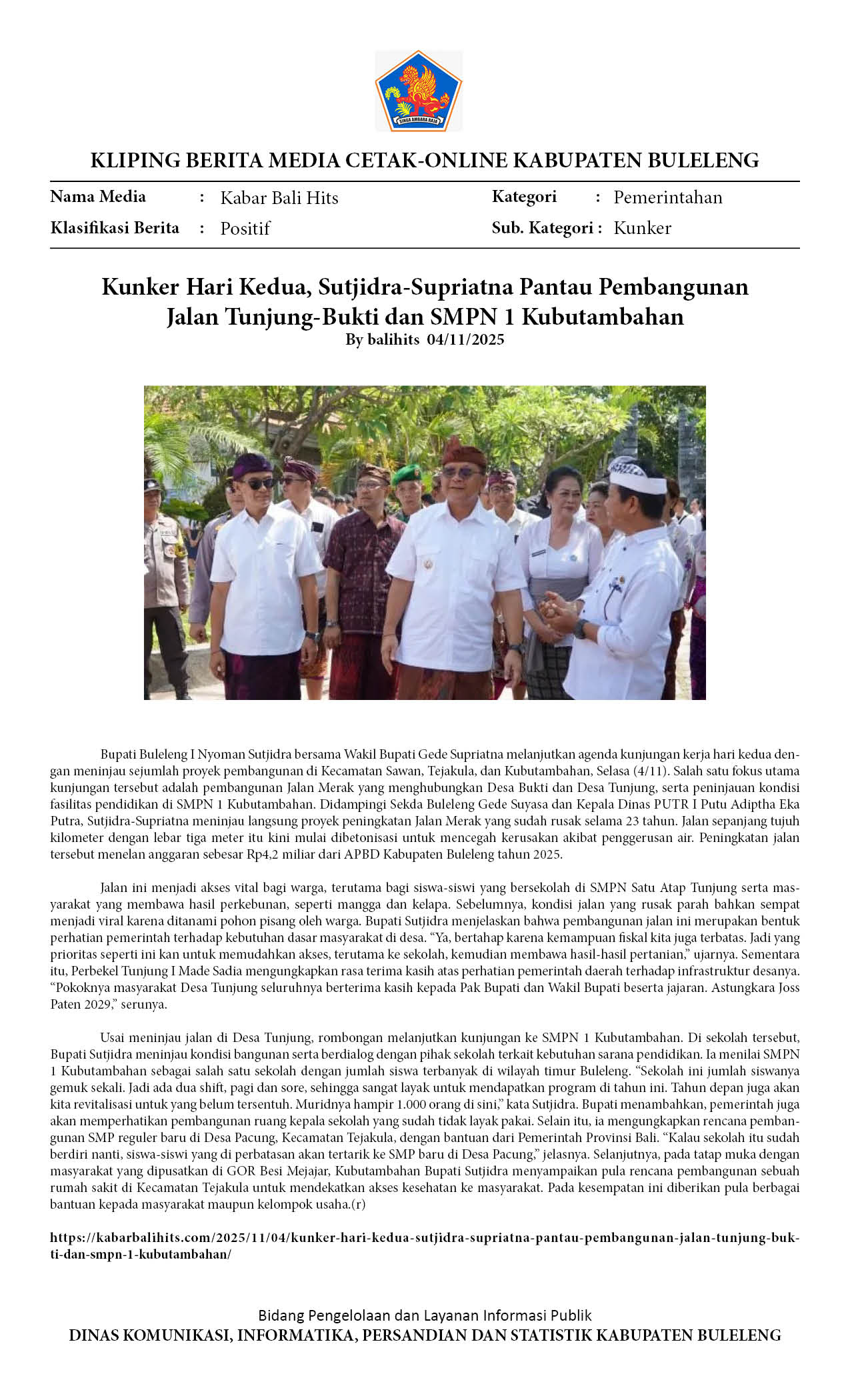 BUPATI-WABUP BULELENG TINJAU JALAN TUNJUNG-BUKTI DAN SMPN KUBUTAMBAHAN