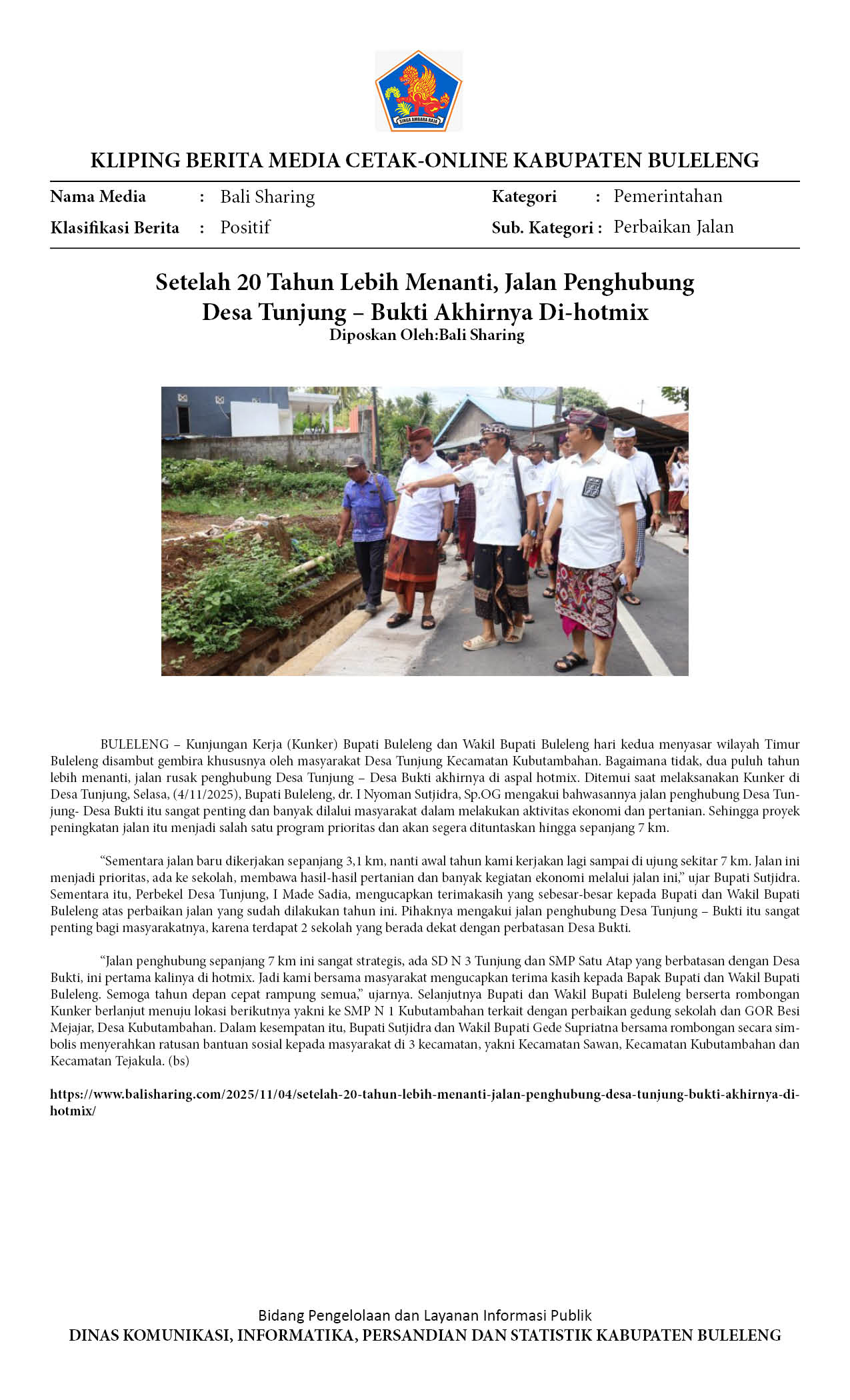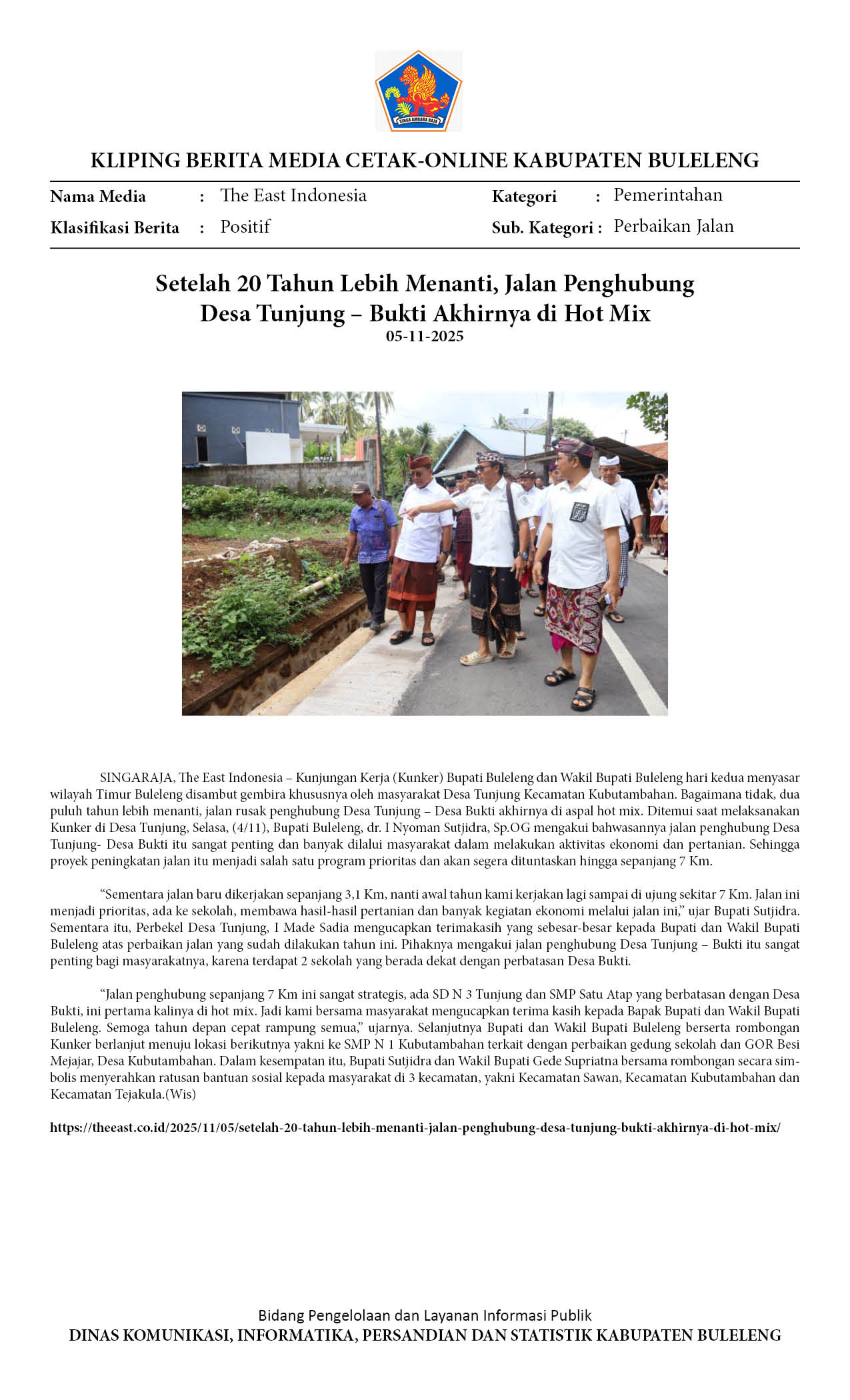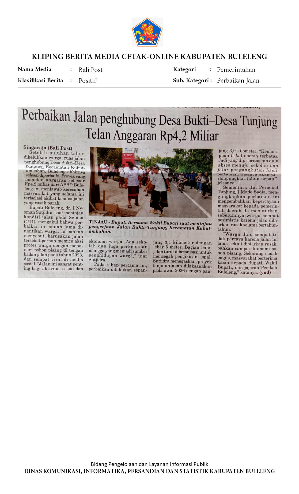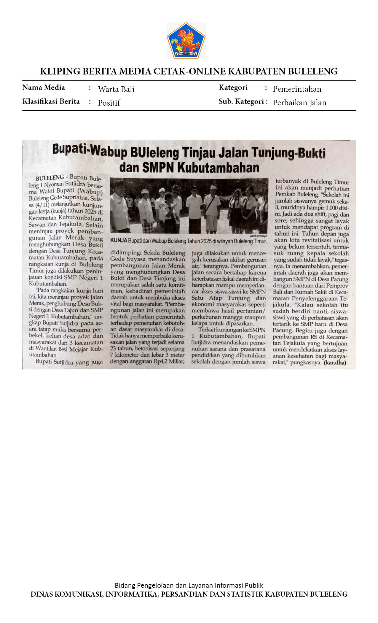 BUPATI-WABUP BULELENG TINJAU JALAN TUNJUNG-BUKTI DAN SMPN KUBUTAMBAHAN