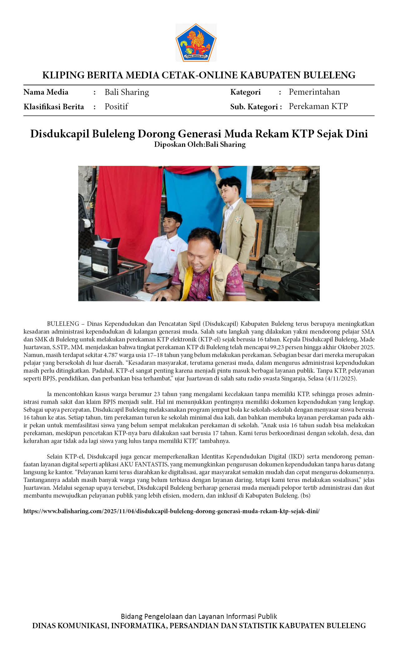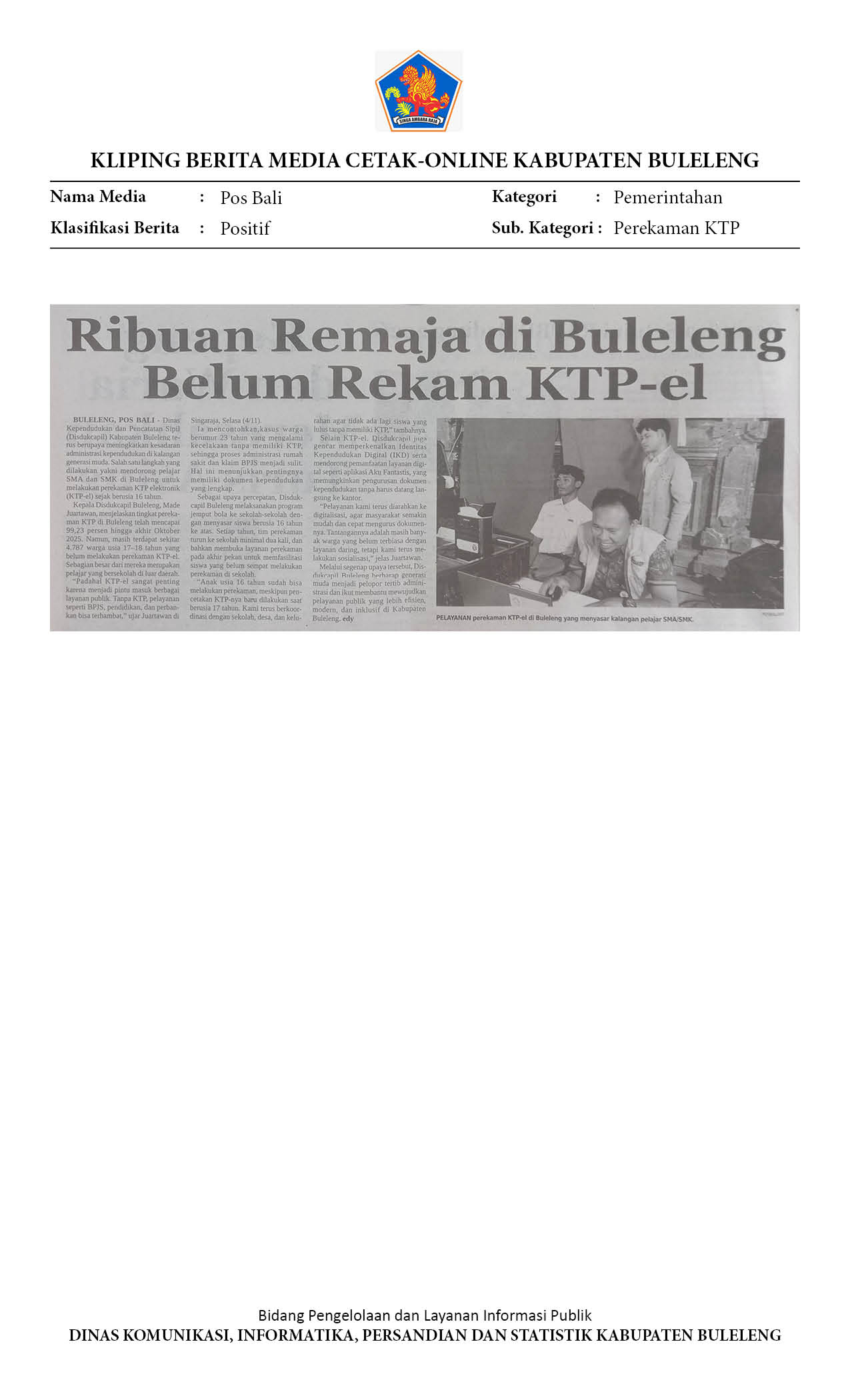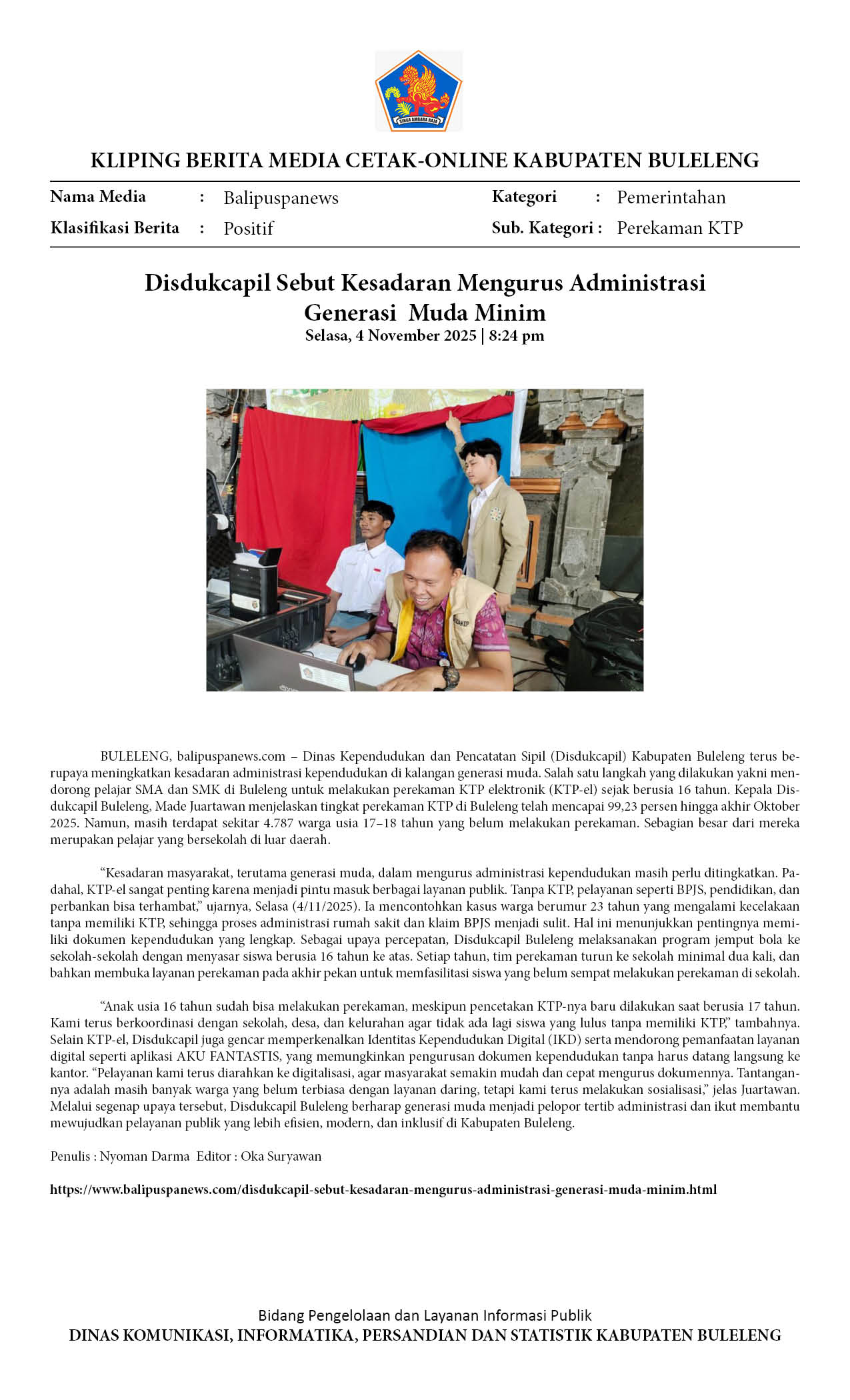 DISDUKCAPIL BULELENG DORONG GENERASI MUDA REKAM KTP SEJAK DINI