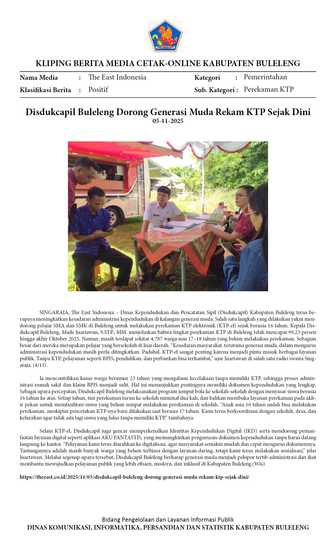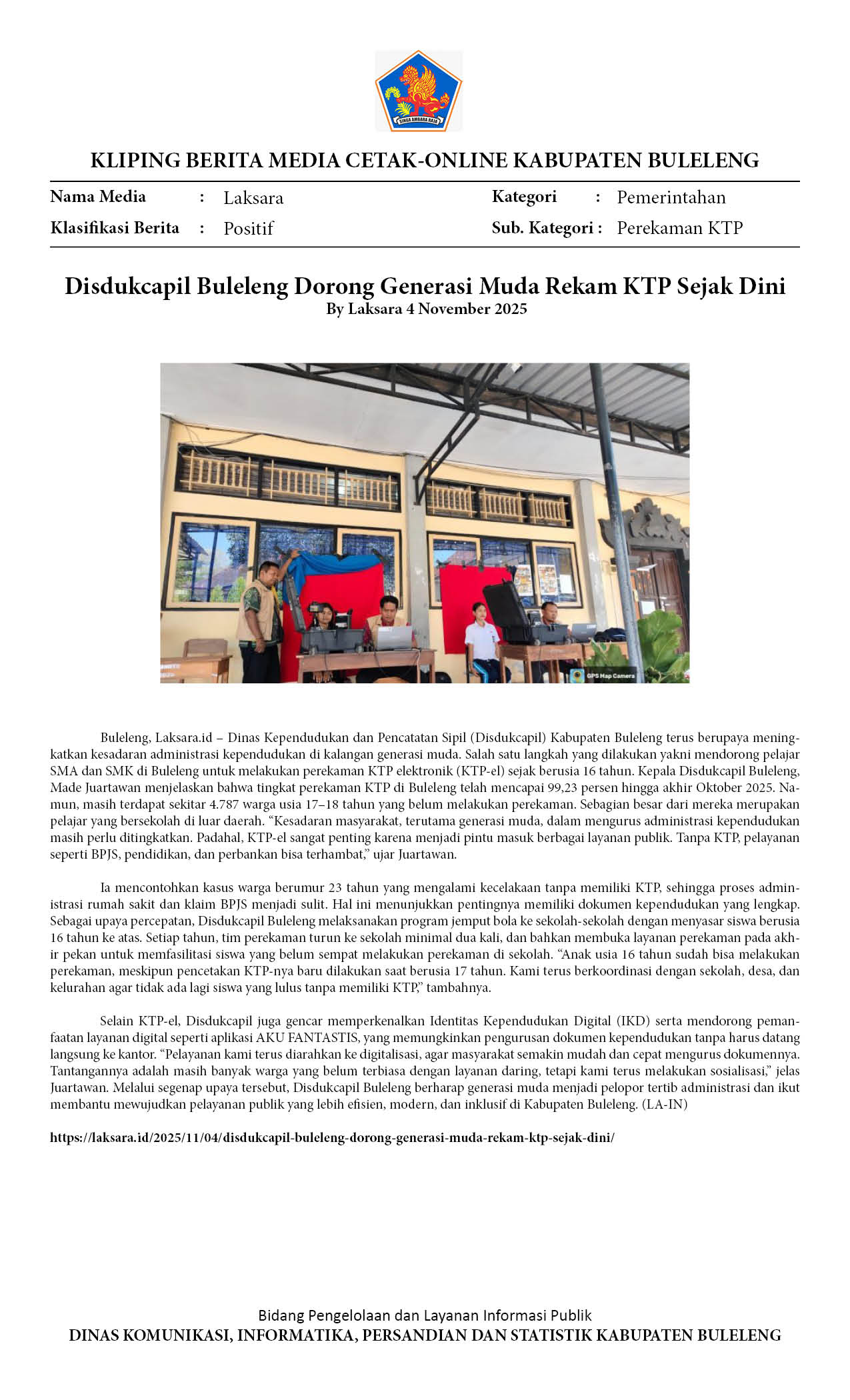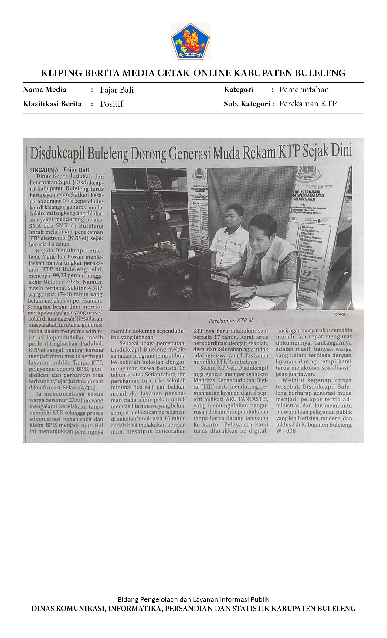 DISDUKCAPIL BULELENG DORONG GENERASI MUDA REKAM KTP SEJAK DINI