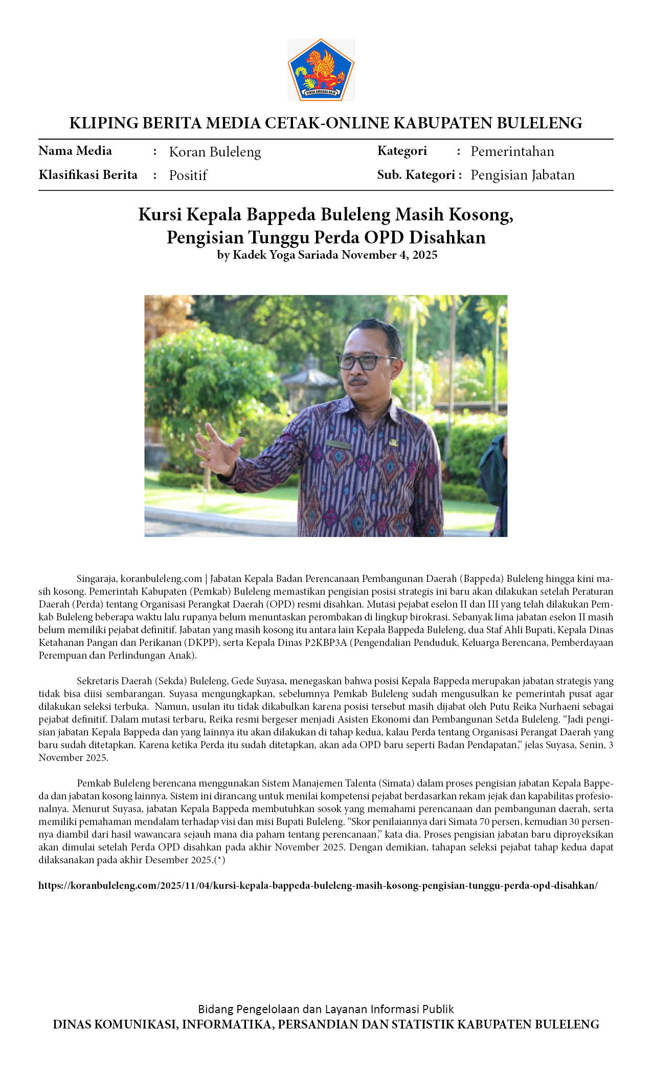 Kliping Kategori Pemerintahan Edisi 05 November 2025