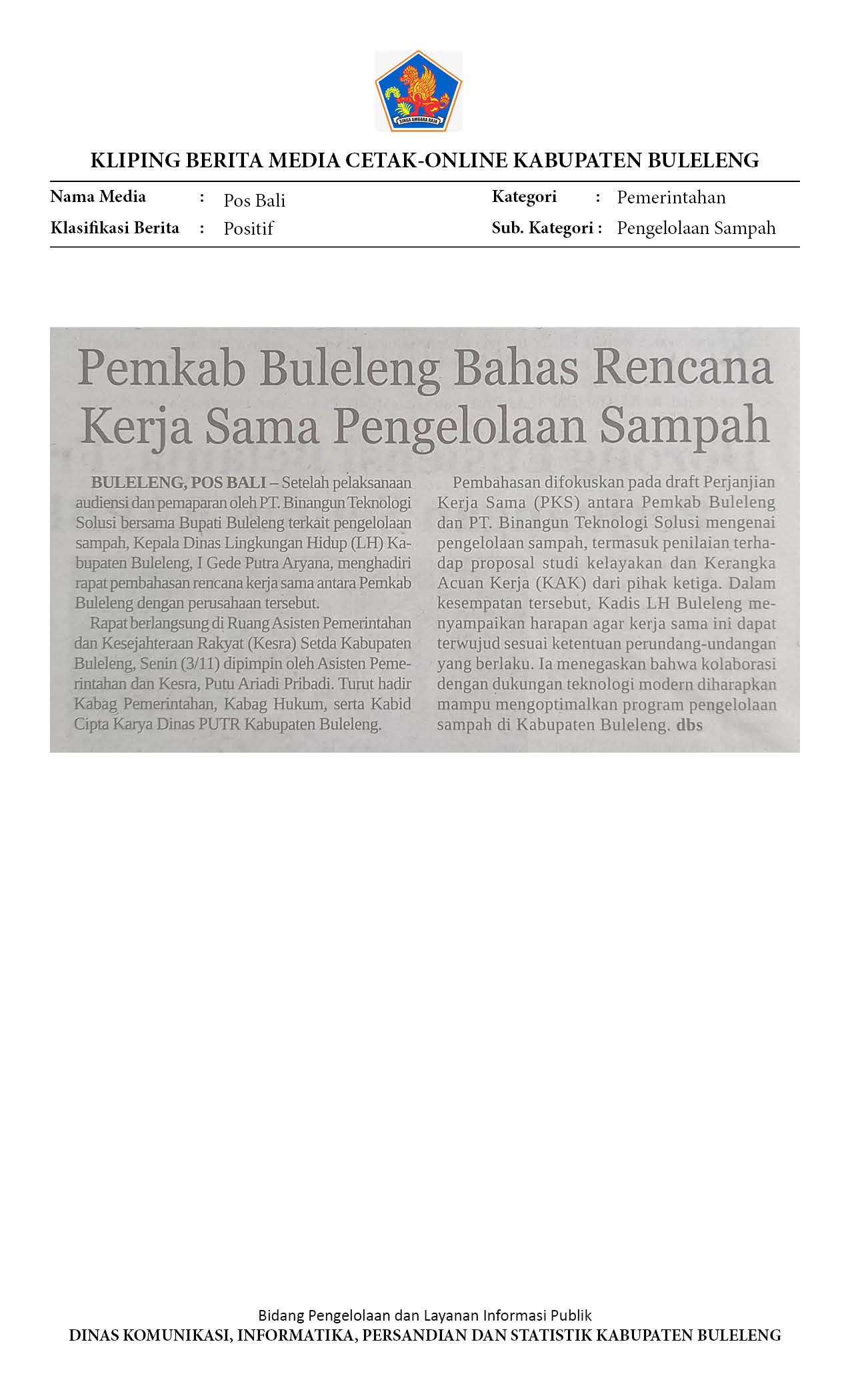 PEMKAB BULELENG BAHAS RENCANA KERJA SAMA PENGELOLAAN SAMPAH