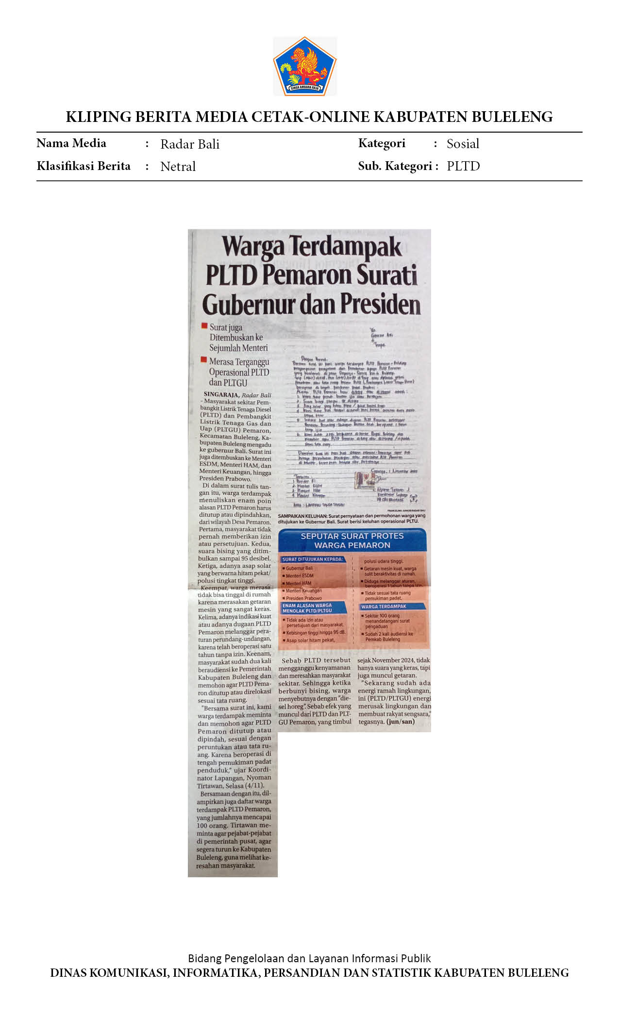 WARGA TERDAMPAK PLTD PEMARON SURATI GUBERNUR DAN PRESIDEN