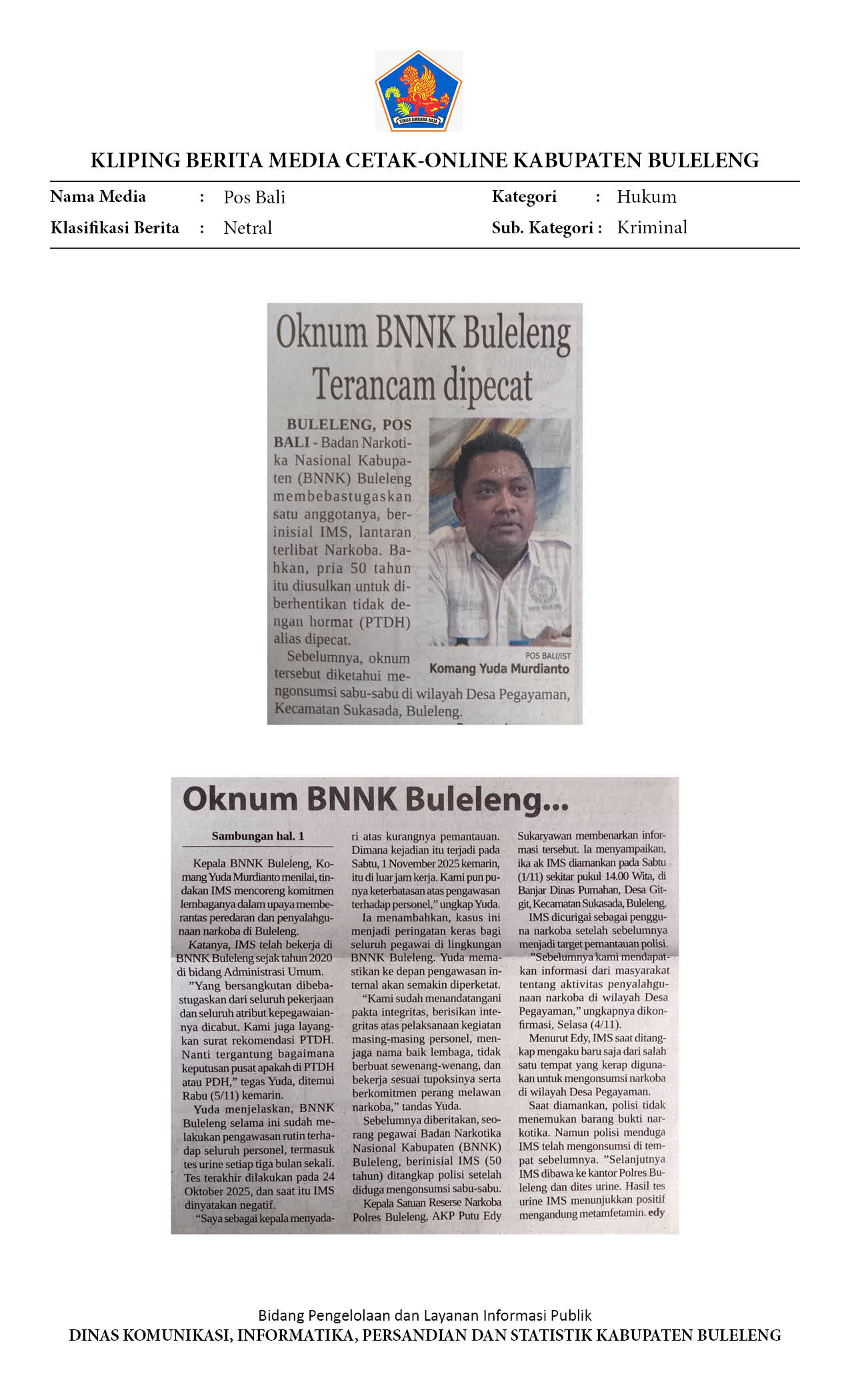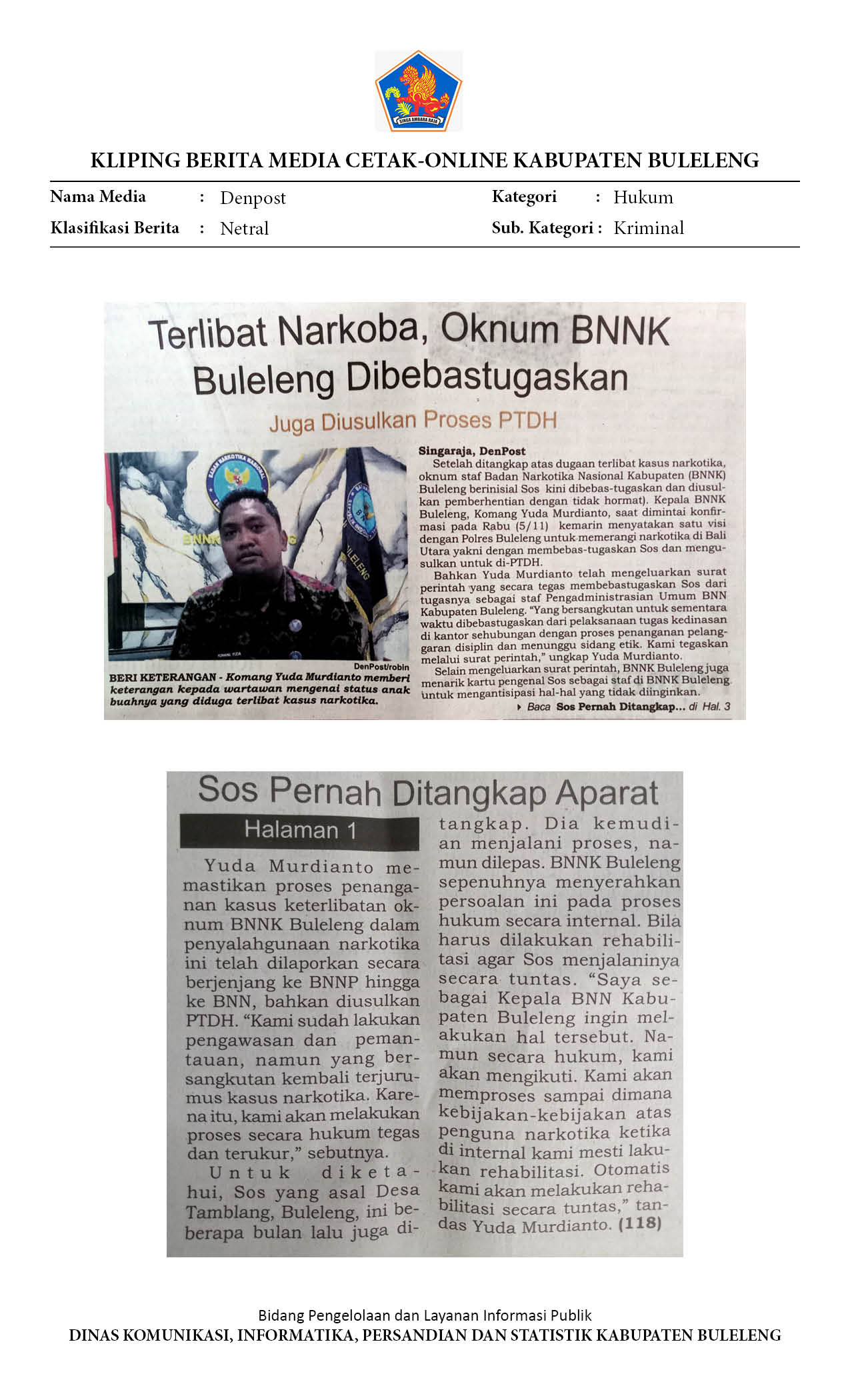 TERLIBAT NARKOBA, OKNUM BNNK BULELENG DIBEBASTUGASKAN