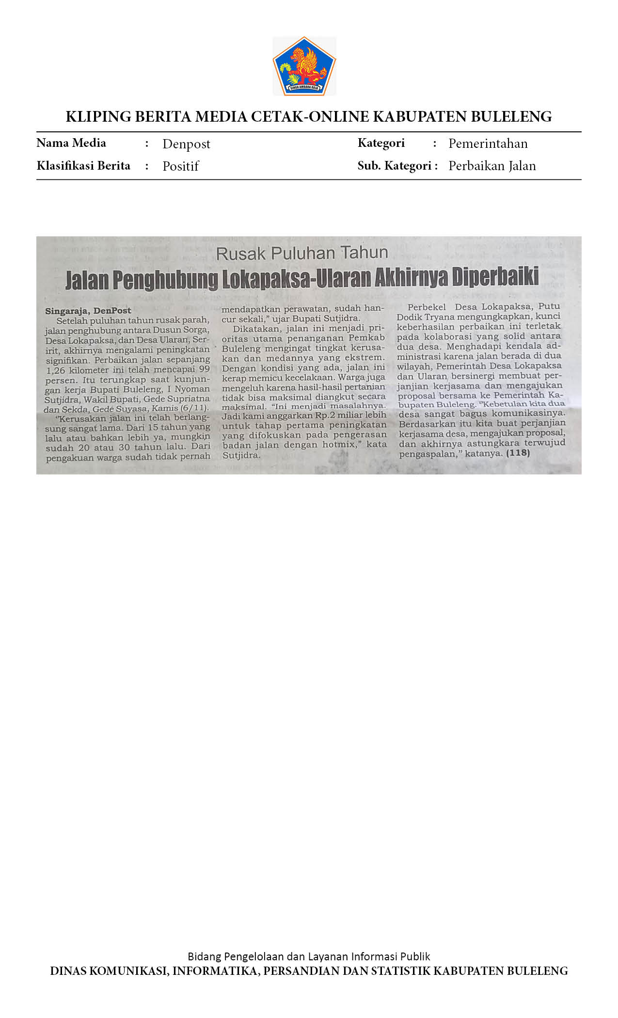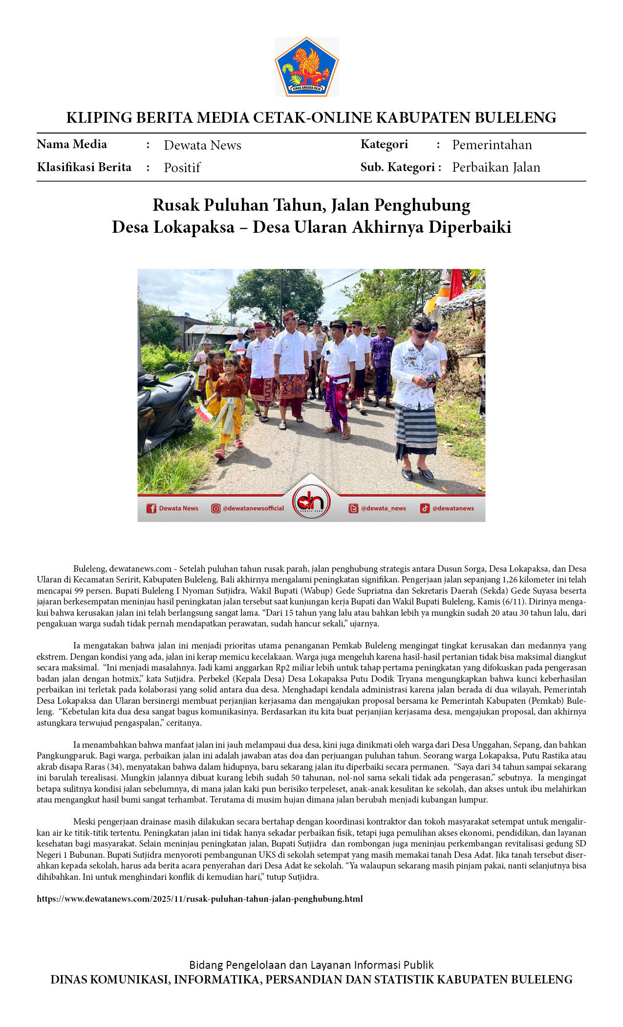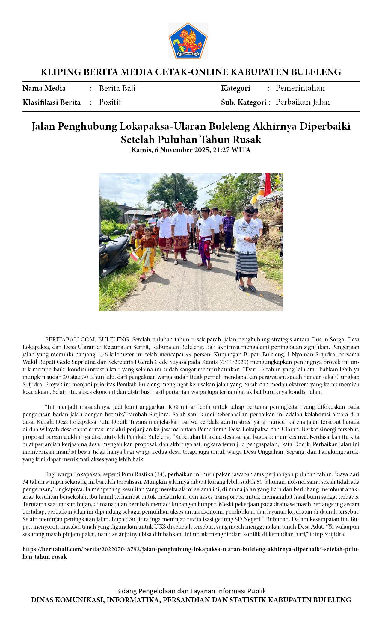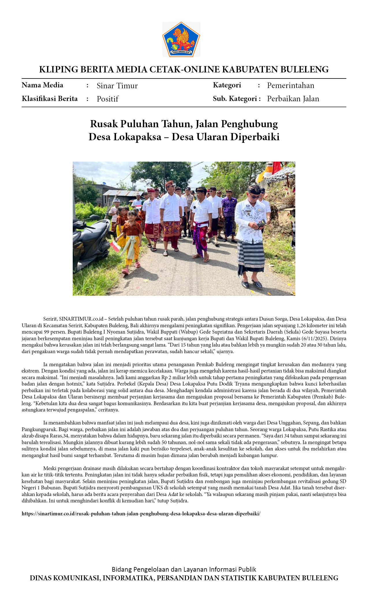 PEMKAB BULELENG, AKHIRNYA MEMPERBAIKI JALAN RUSAK PULUHAN TAHUN, JALUR DESA LOKAPAKSA - DESA ULARAN