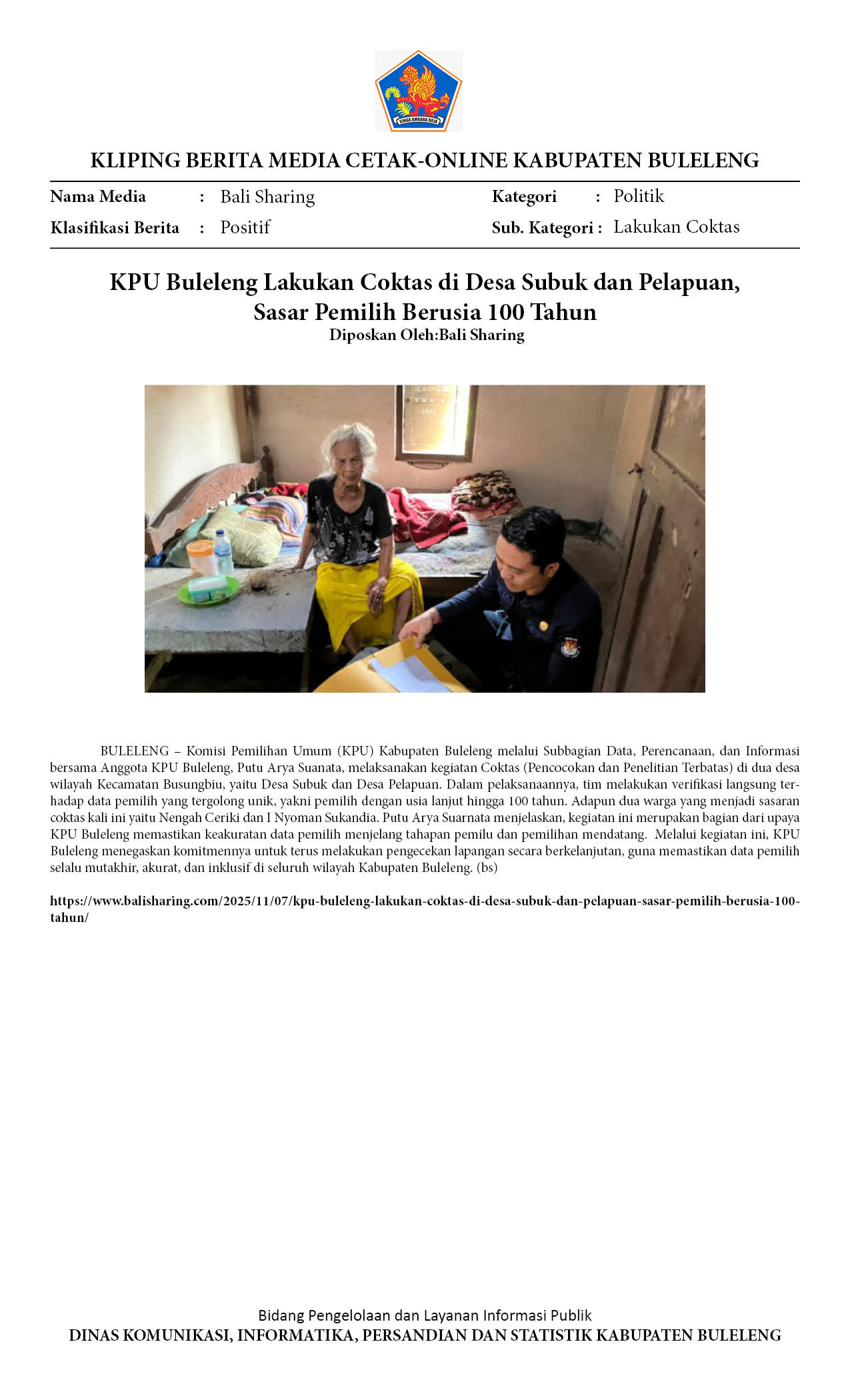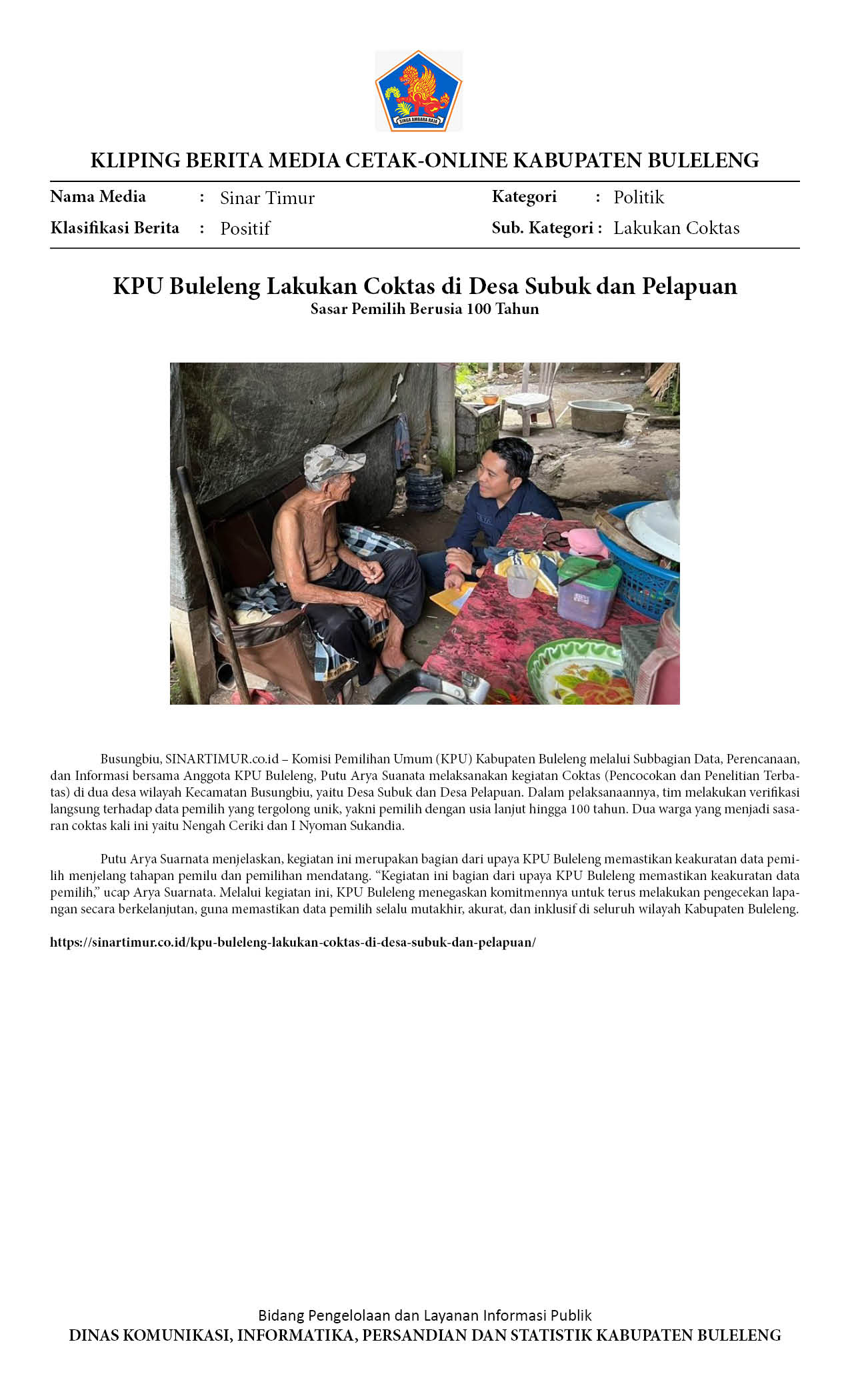 KPU BULELENG LAKUKAN COKTAS DI DESA SUBUK DAN PELAPUAN, SASAR PEMILIH BERUSIA 100 TAHUN