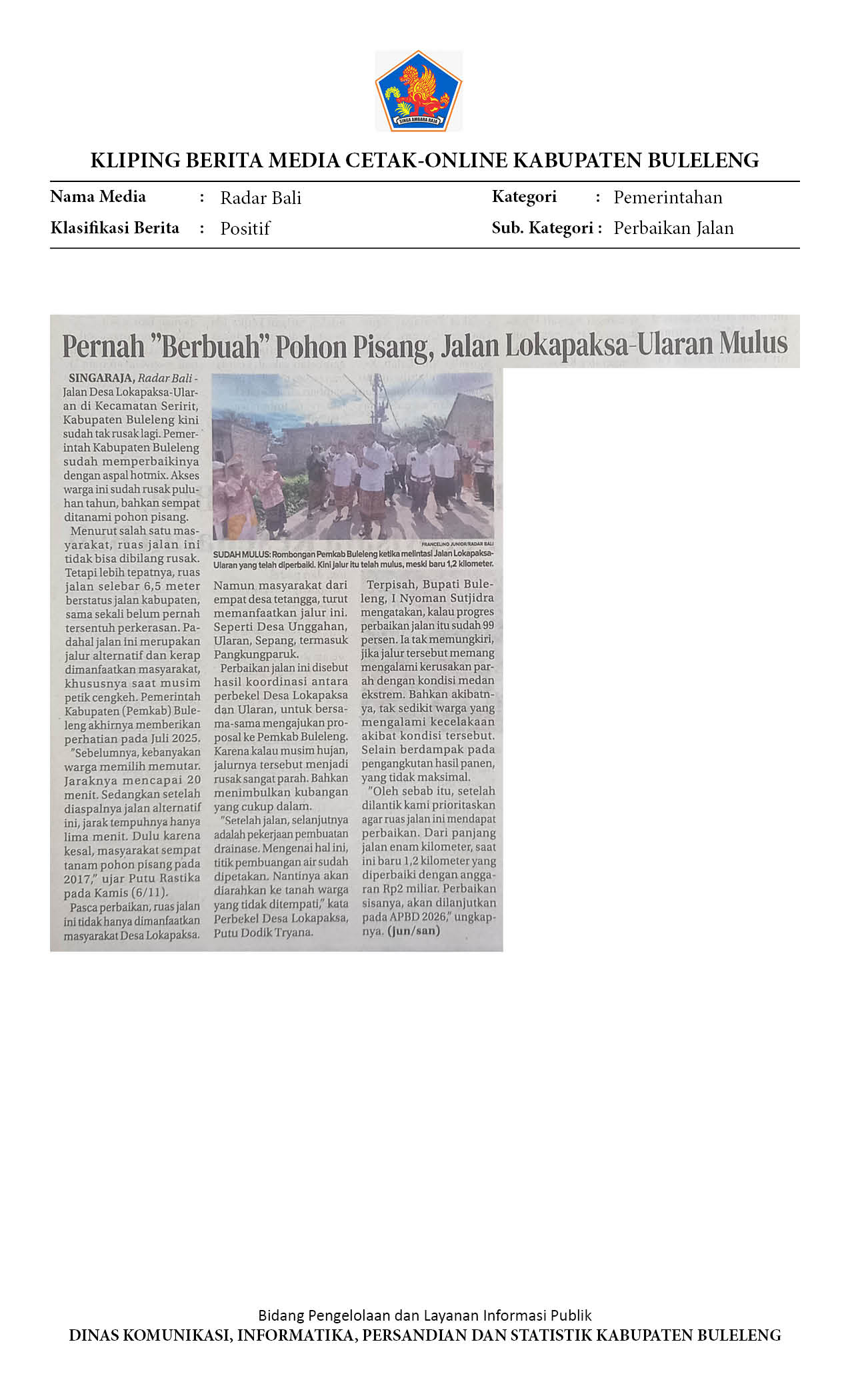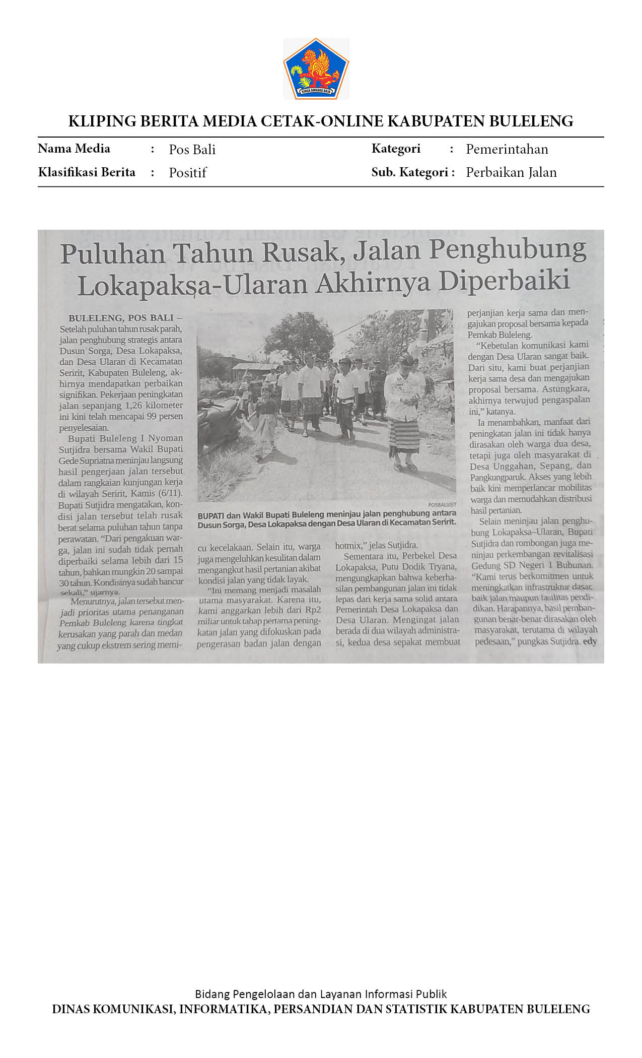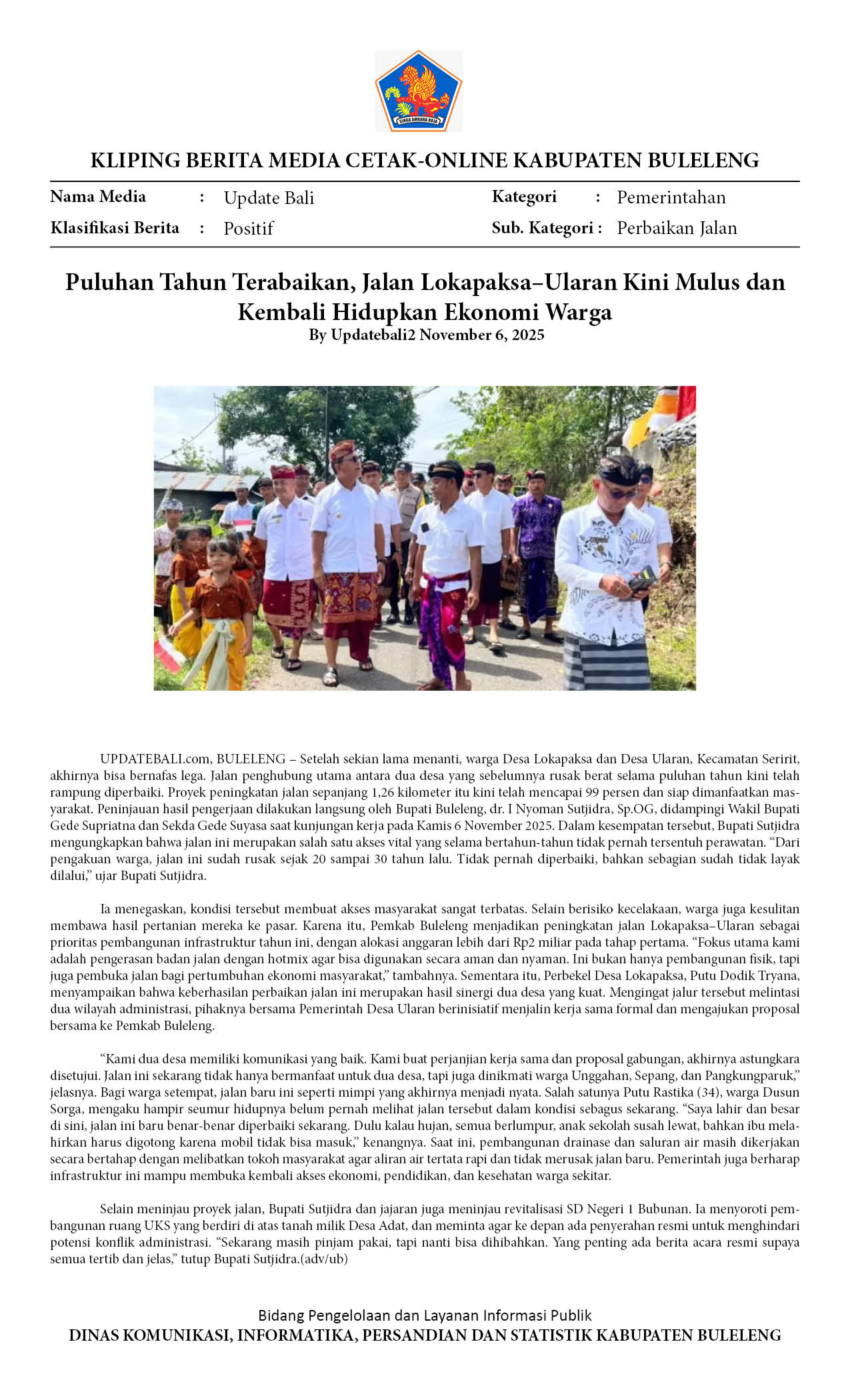 BULELENG PERKUAT PEMERATAAN PEMBANGUNAN WILAYAH PERKOTAAN DAN PEDESAAN