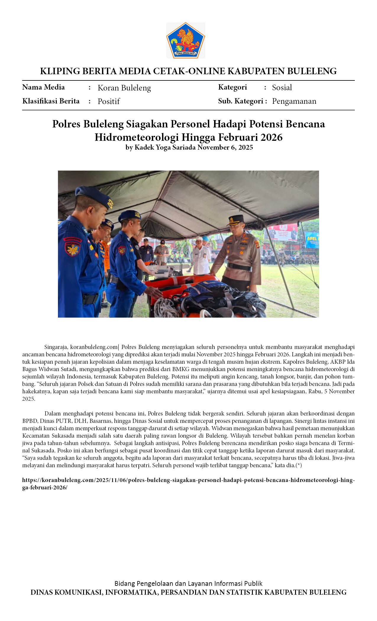 POLRES BULELENG SIAGAKAN PERSONEL HADAPI POTENSI BENCANA HIDROMETEOROLOGI HINGGA FEBRUARI 2026