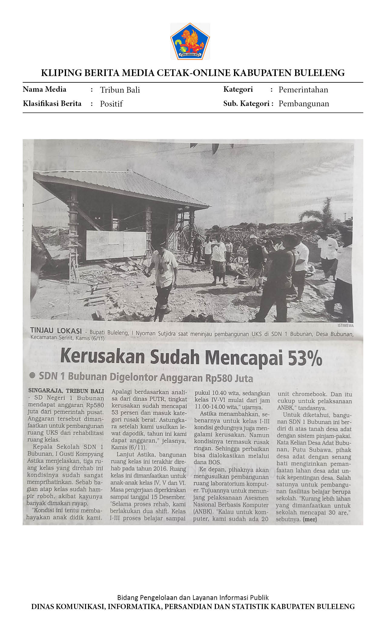 SDN 1 BUBUNAN DIGELONTOR ANGGARAN RP 580 JUTA