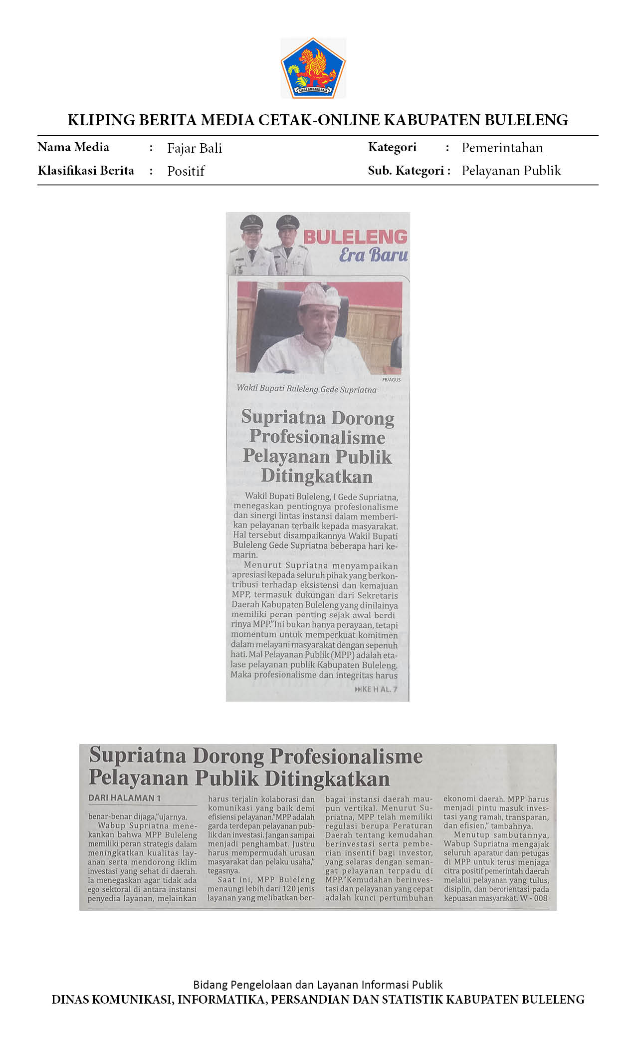 SUPRIATNA DORONG PROFESIONALISME PELAYANAN PUBLIK DITINGKATKAN