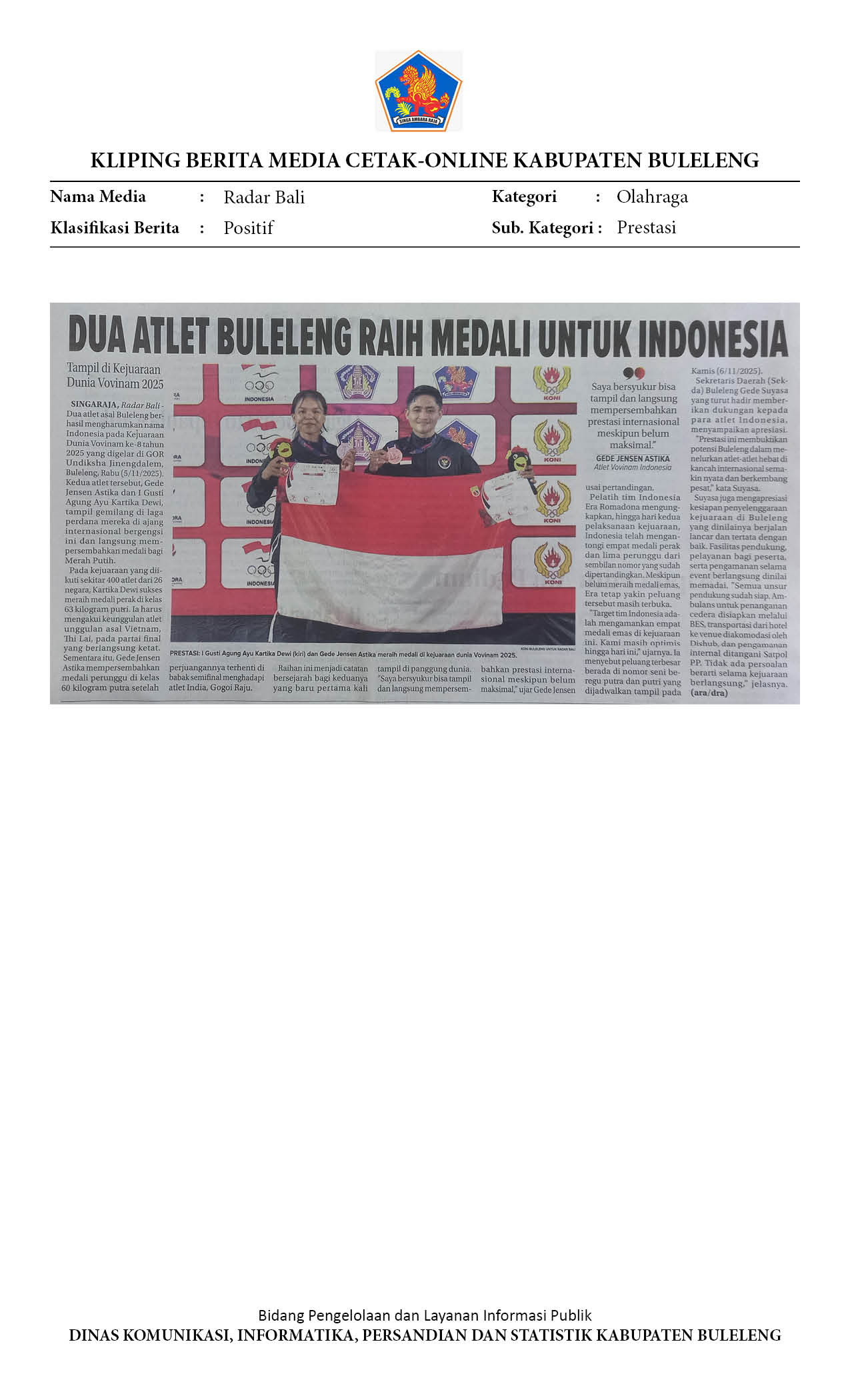 Kliping Kategori Olahraga Edisi 07 November 2025
