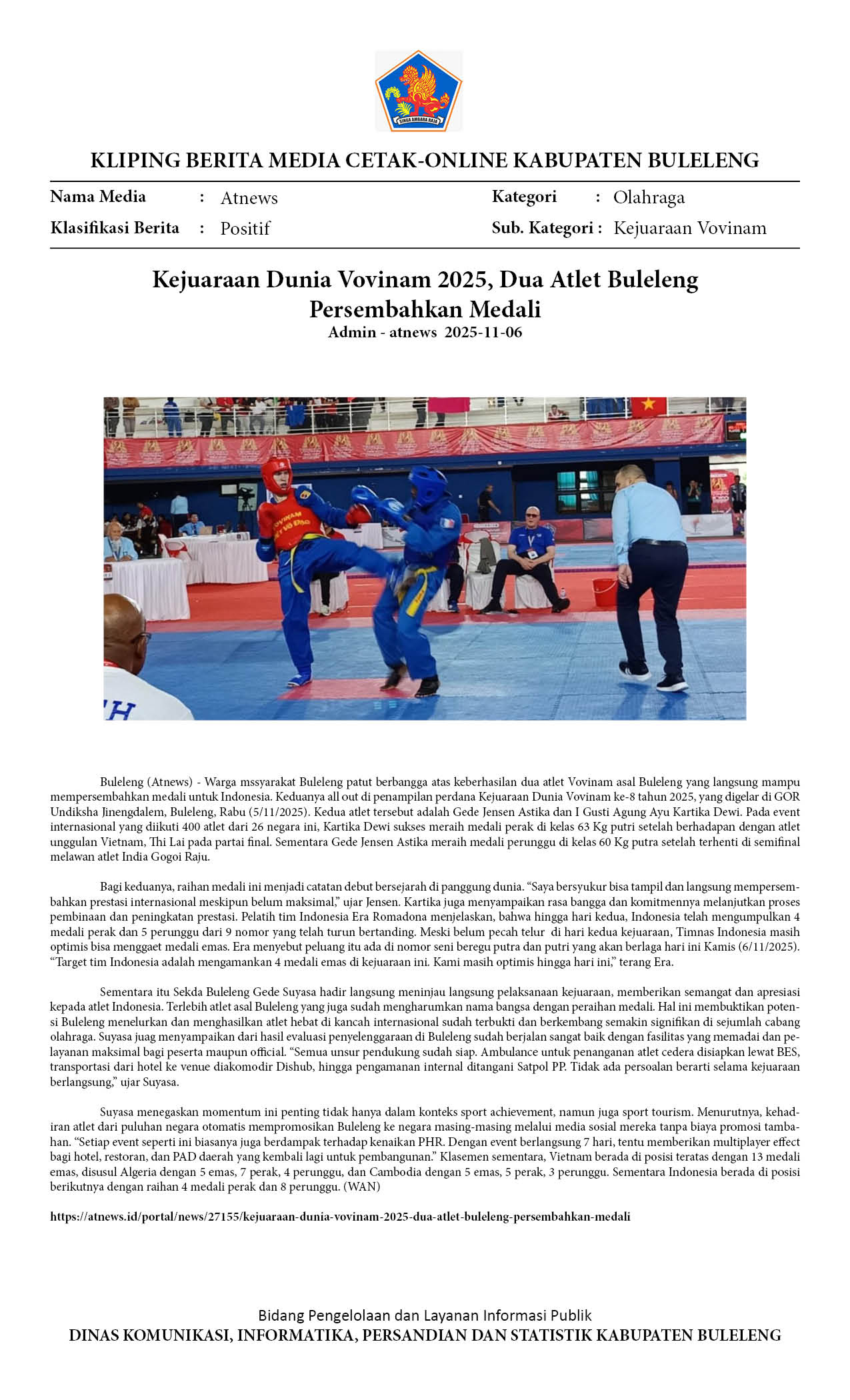 KEJUARAAN DUNIA VOVINAM 2025, DUA ATLET BULELENG PERSEMBAHKAN MEDALIĀ