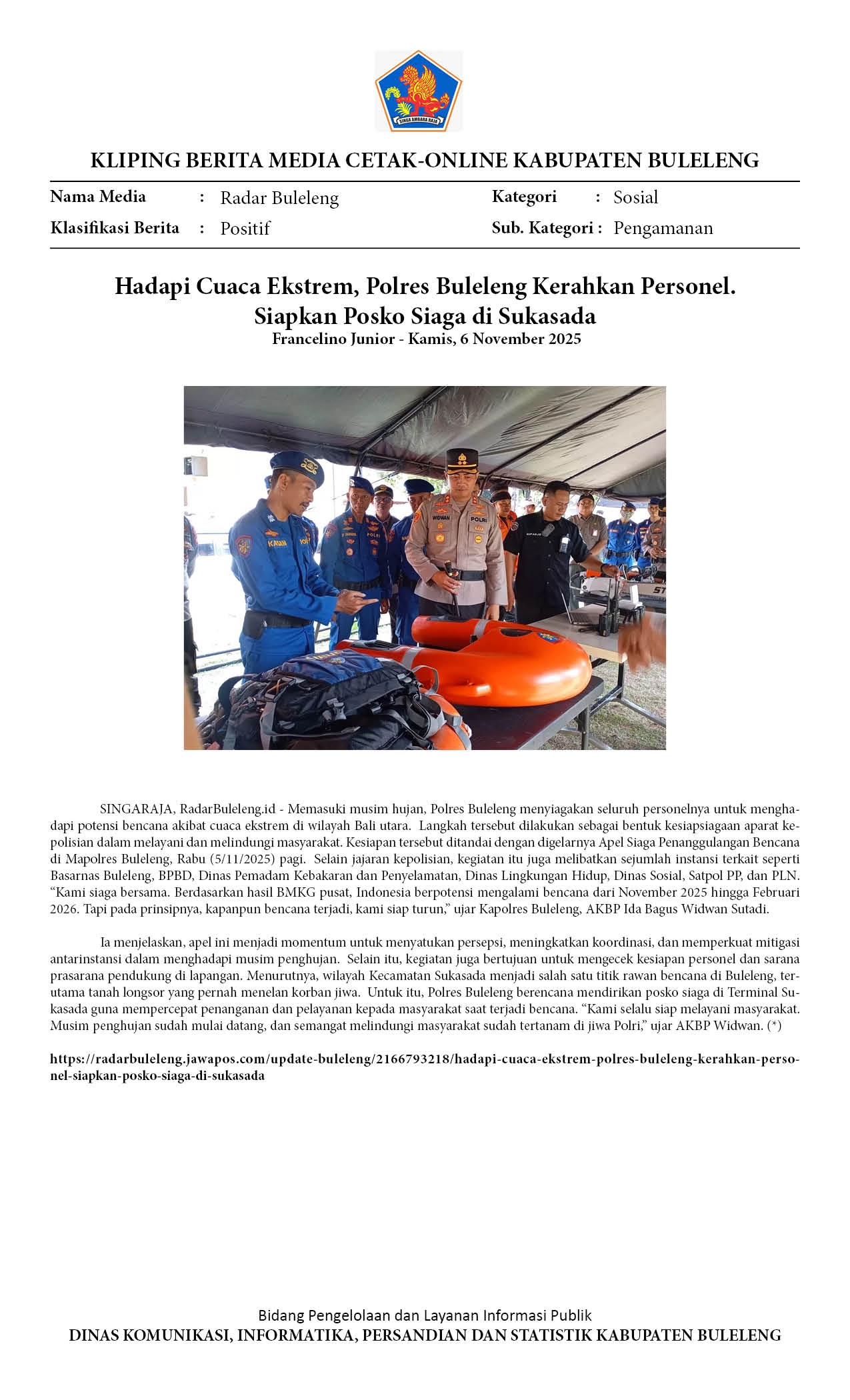 HADAPI CUACA EKSTREM, POLRES BULELENG KERAHKAN PERSONEL. SIAPKAN POSKO SIAGA DI SUKASADA