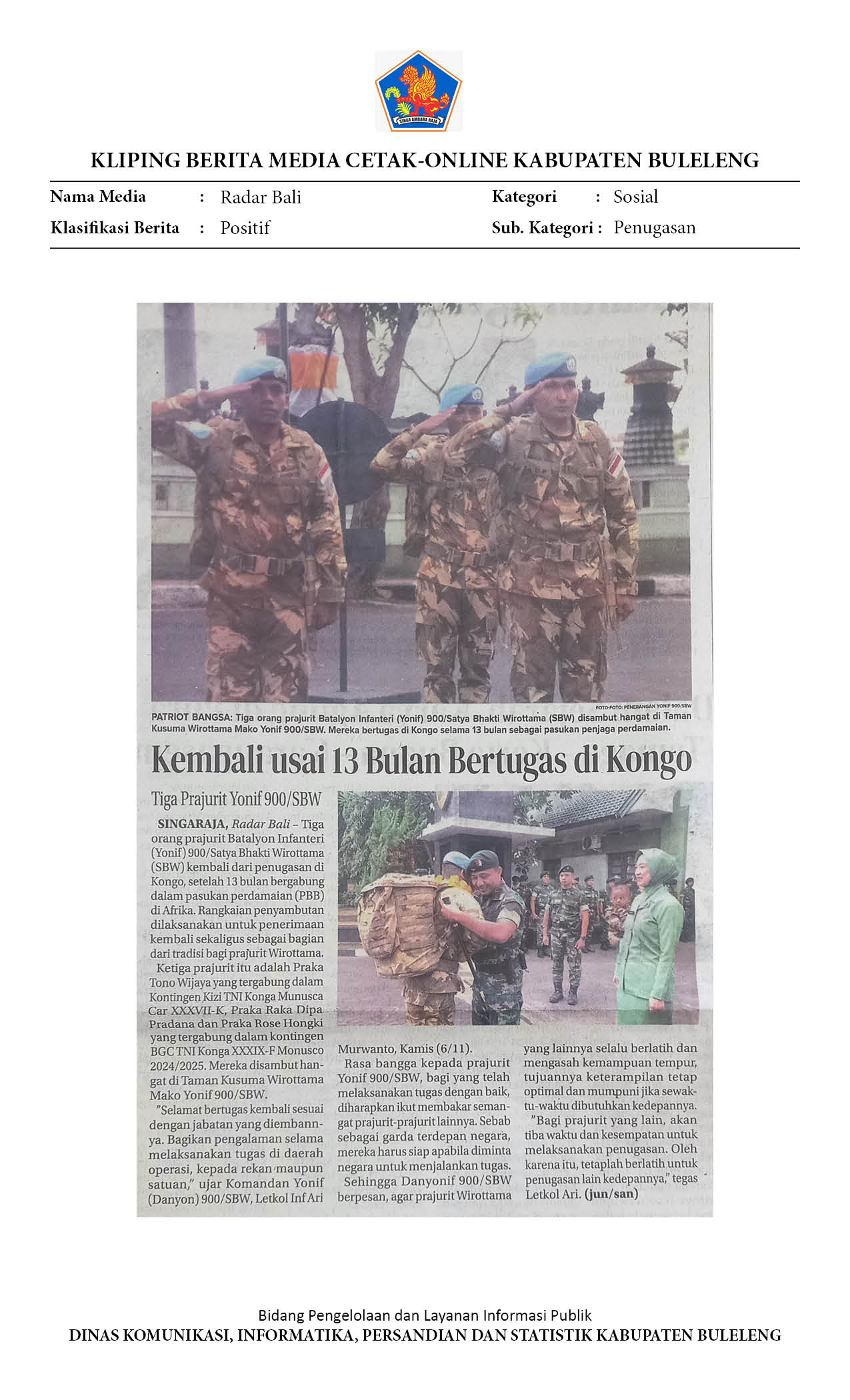 KEMBALI USAI 13 BULAN BERTUGAS DI KONGO