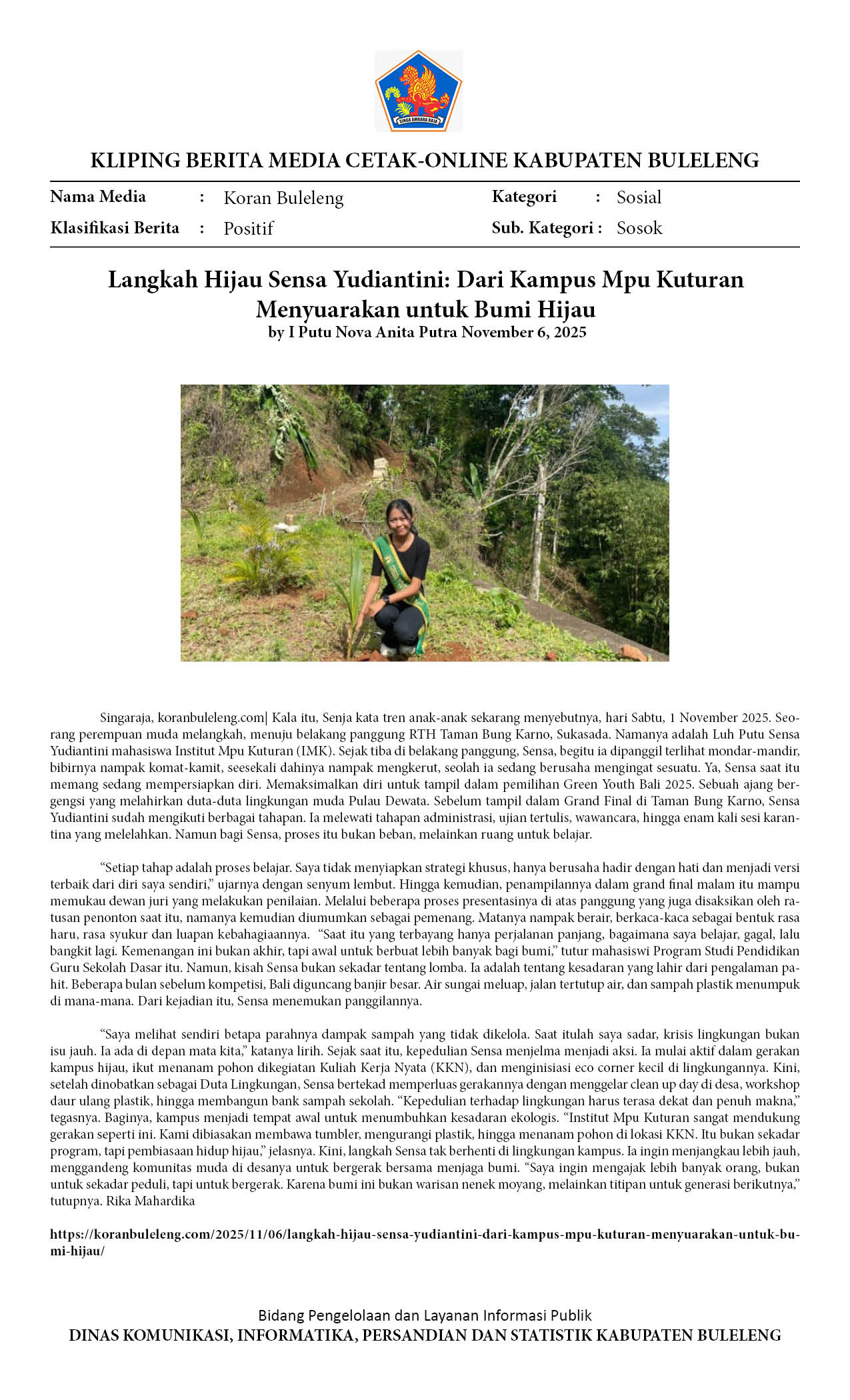 LANGKAH HIJAU SENSA YUDIANTINI: DARI KAMPUS MPU KUTURAN MENYUARAKAN UNTUK BUMI HIJAU