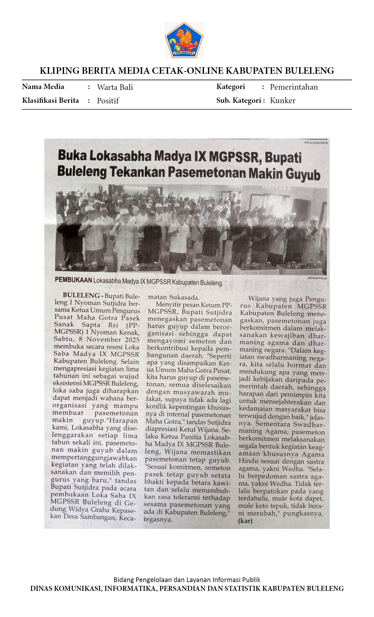 BUKA LOKASABHA MADYA IX MGPSSR, BUPATI BULELENG TEKANKAN PESEMETONAN MAKIN GUYUB