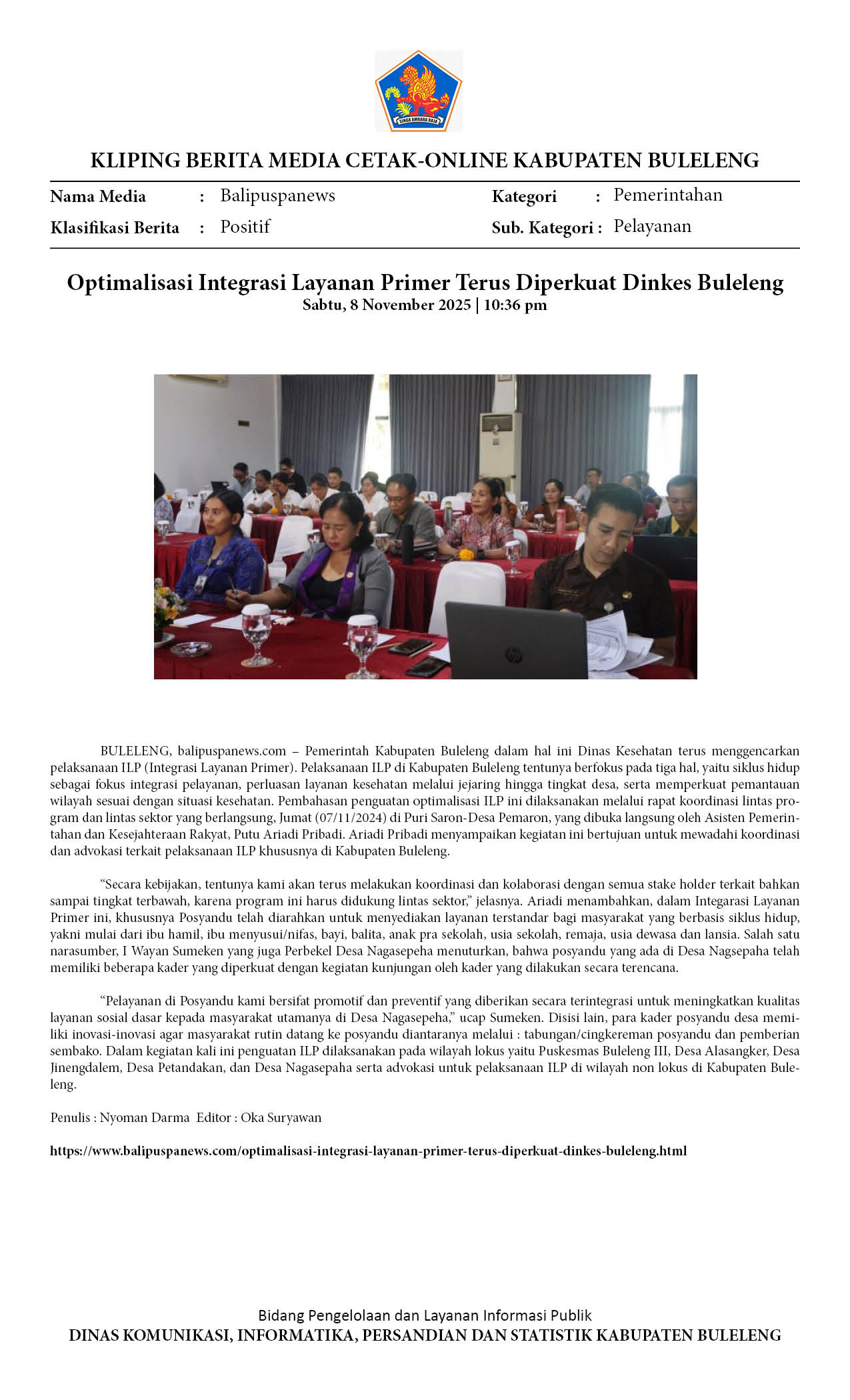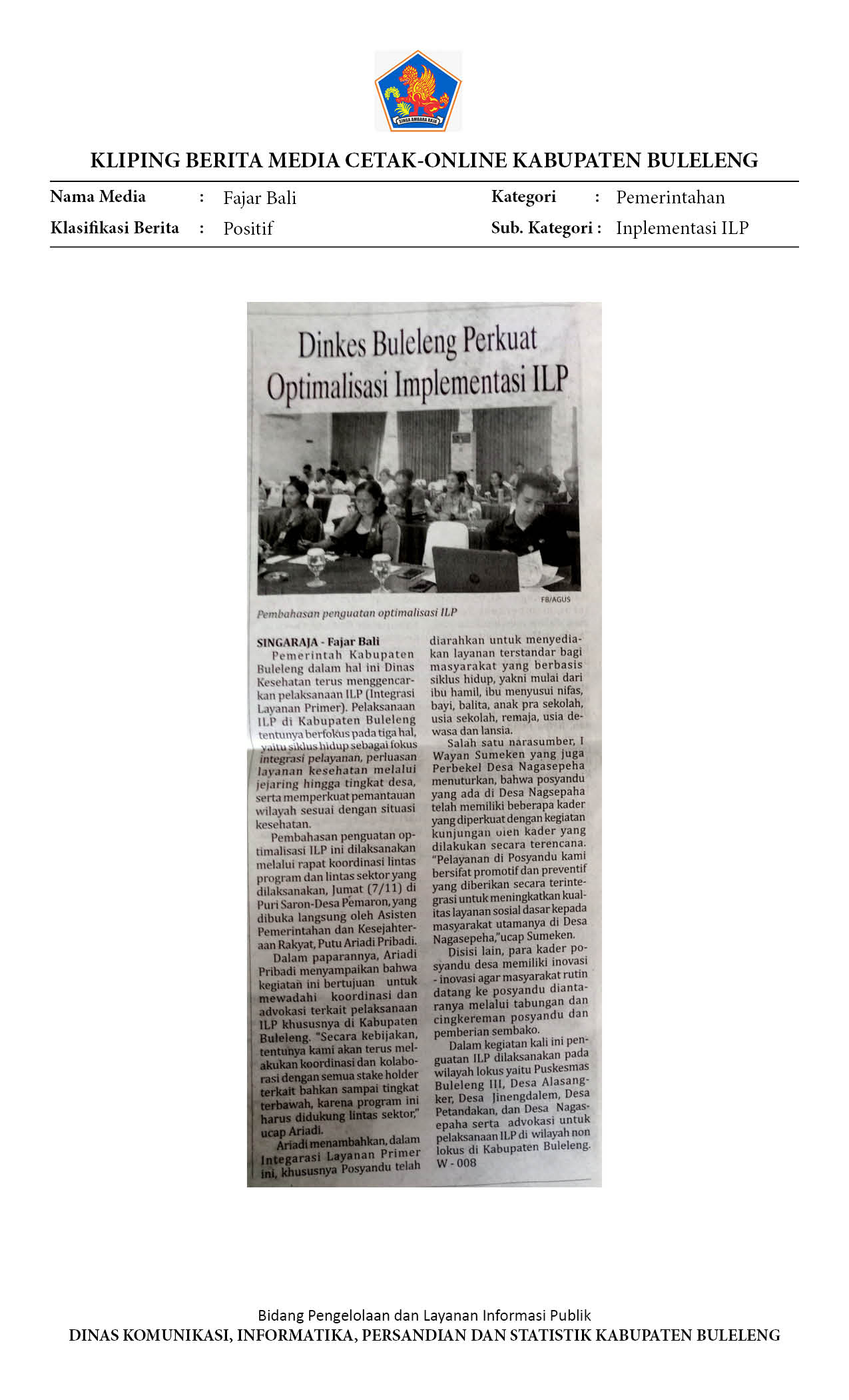 OPTIMALISASI INTEGRASI LAYANAN PRIMER TERUS DIPERKUAT DINKES BULELENG
