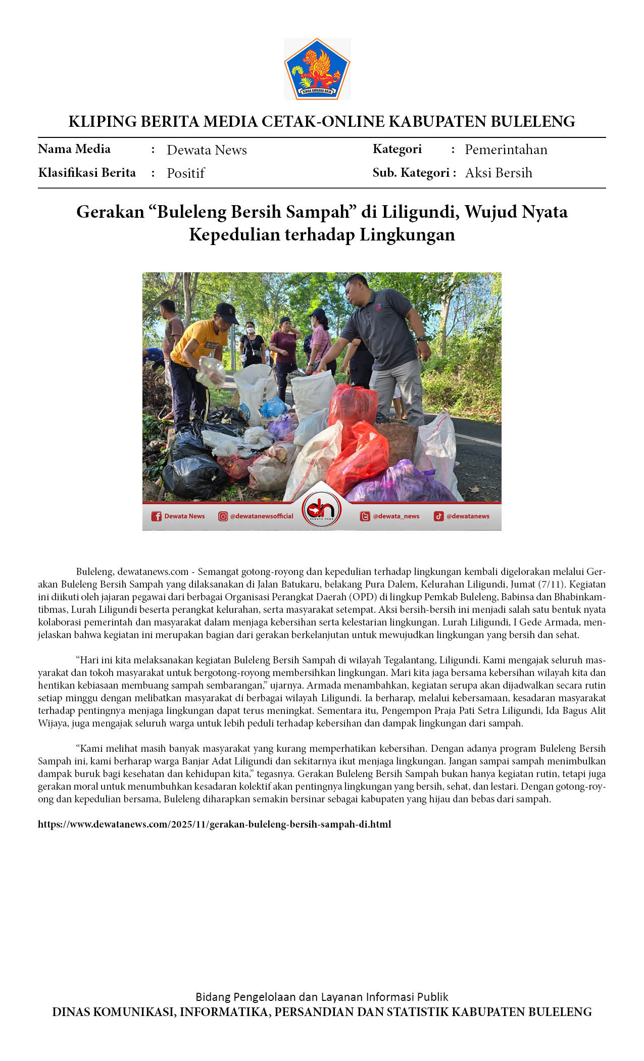 GERAKAN “BULELENG BERSIH SAMPAH” DI LILIGUNDI, WUJUD NYATA KEPEDULIAN TERHADAP LINGKUNGAN