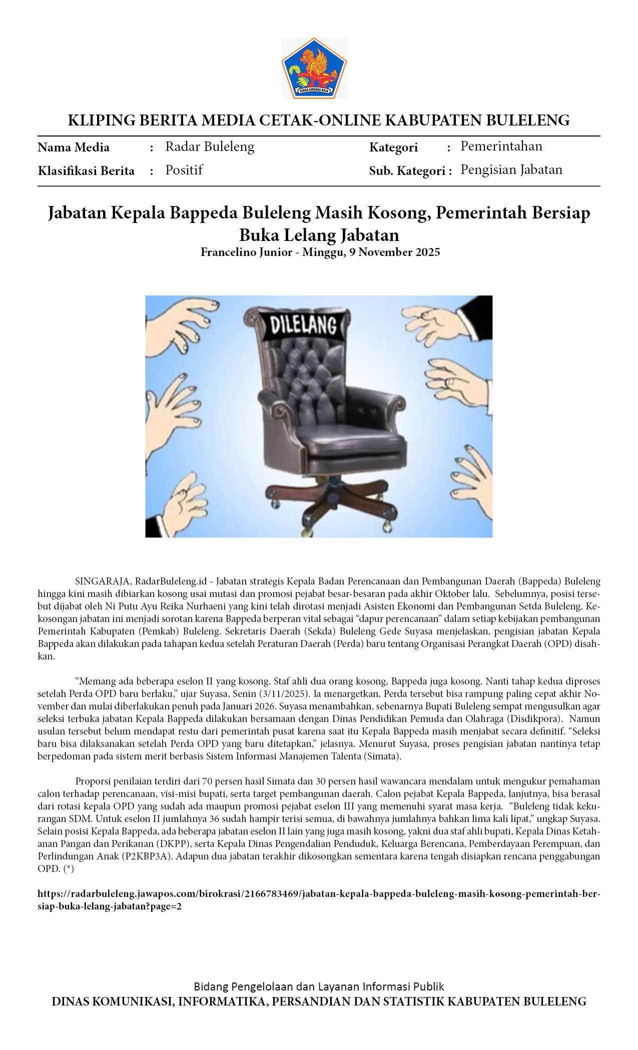 JABATAN KEPALA BAPPEDA BULELENG MASIH KOSONG, PEMERINTAH BERSIAP BUKA LELANG JABATAN