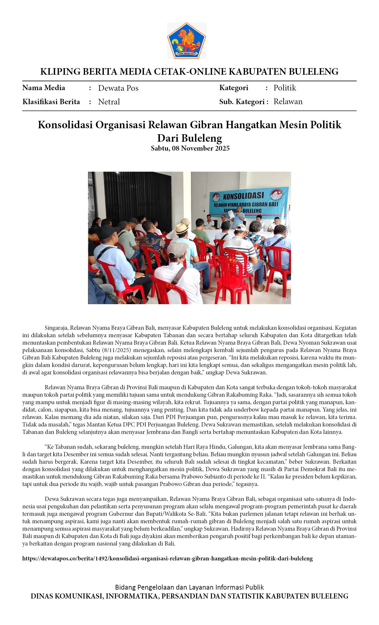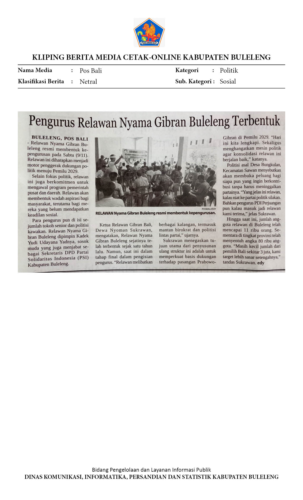 PENGURUS RELAWAN NYAMA GIBRAN BULELENG TERBENTUK