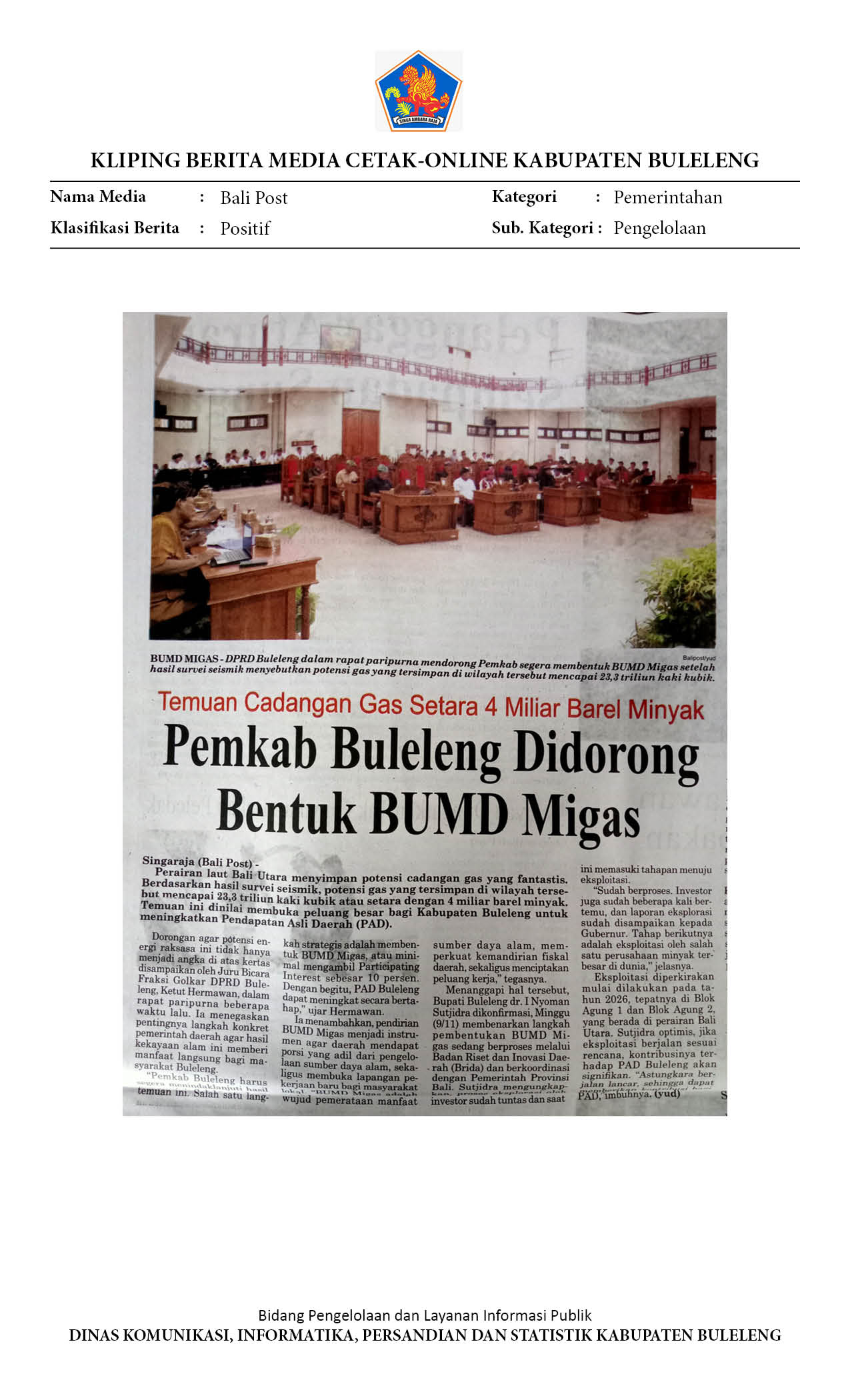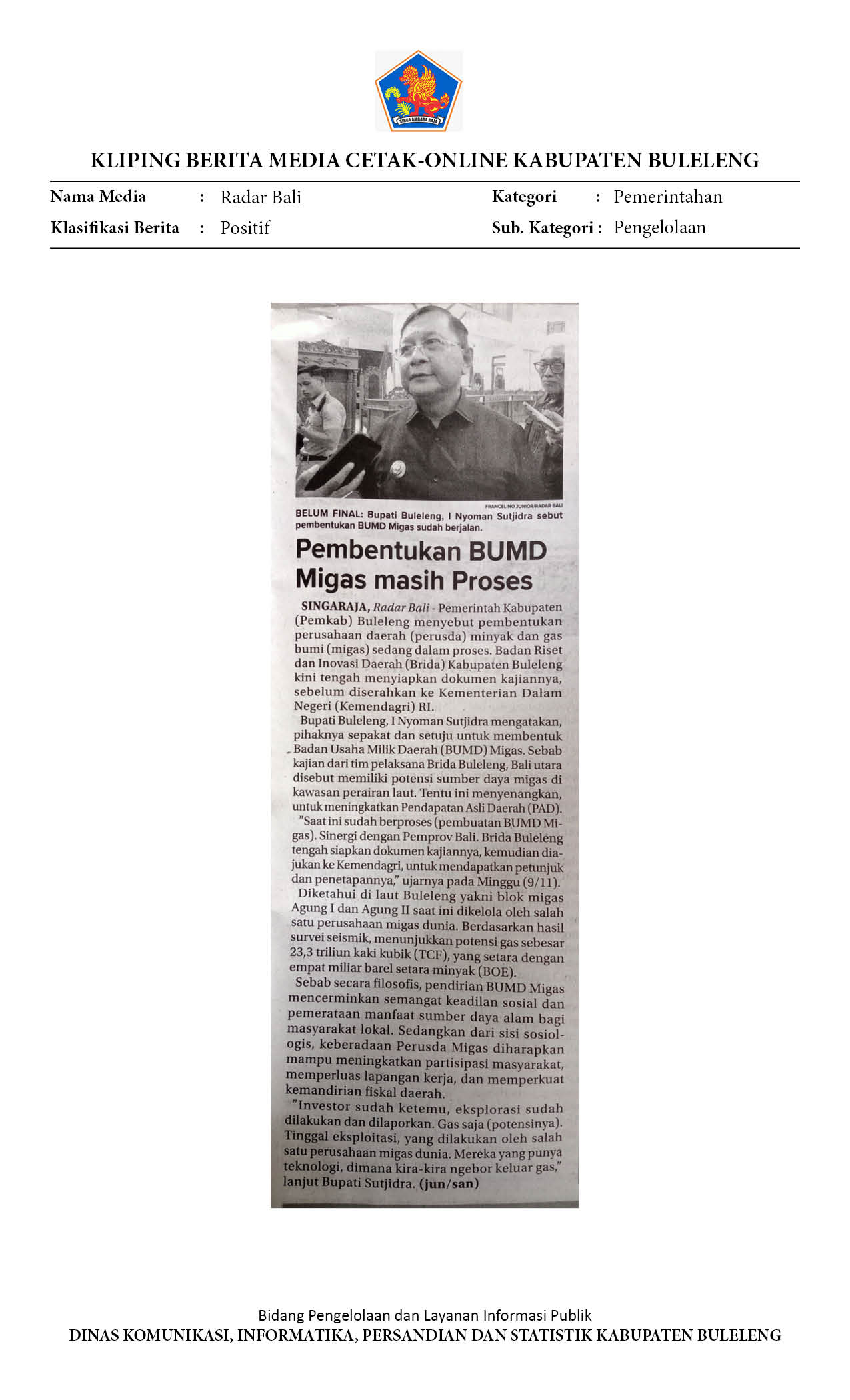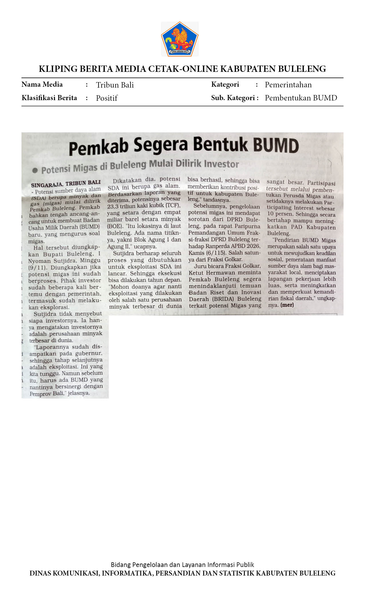 PEMKAB BULELENG DIDORONG BENTUK BUMD MIGAS