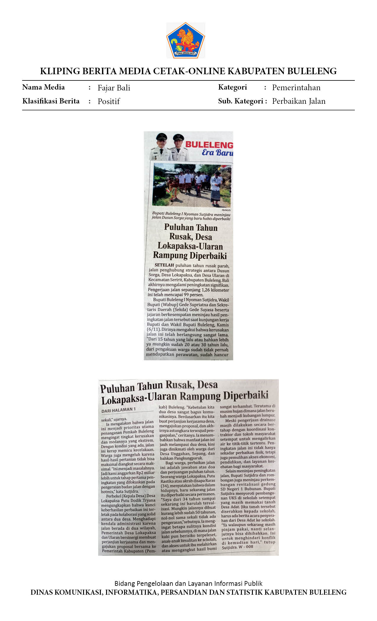 PULUHAN TAHUN RUSAK, DESA LOKAPAKSA-ULARAN RAMPUNG DIPERBAIKI