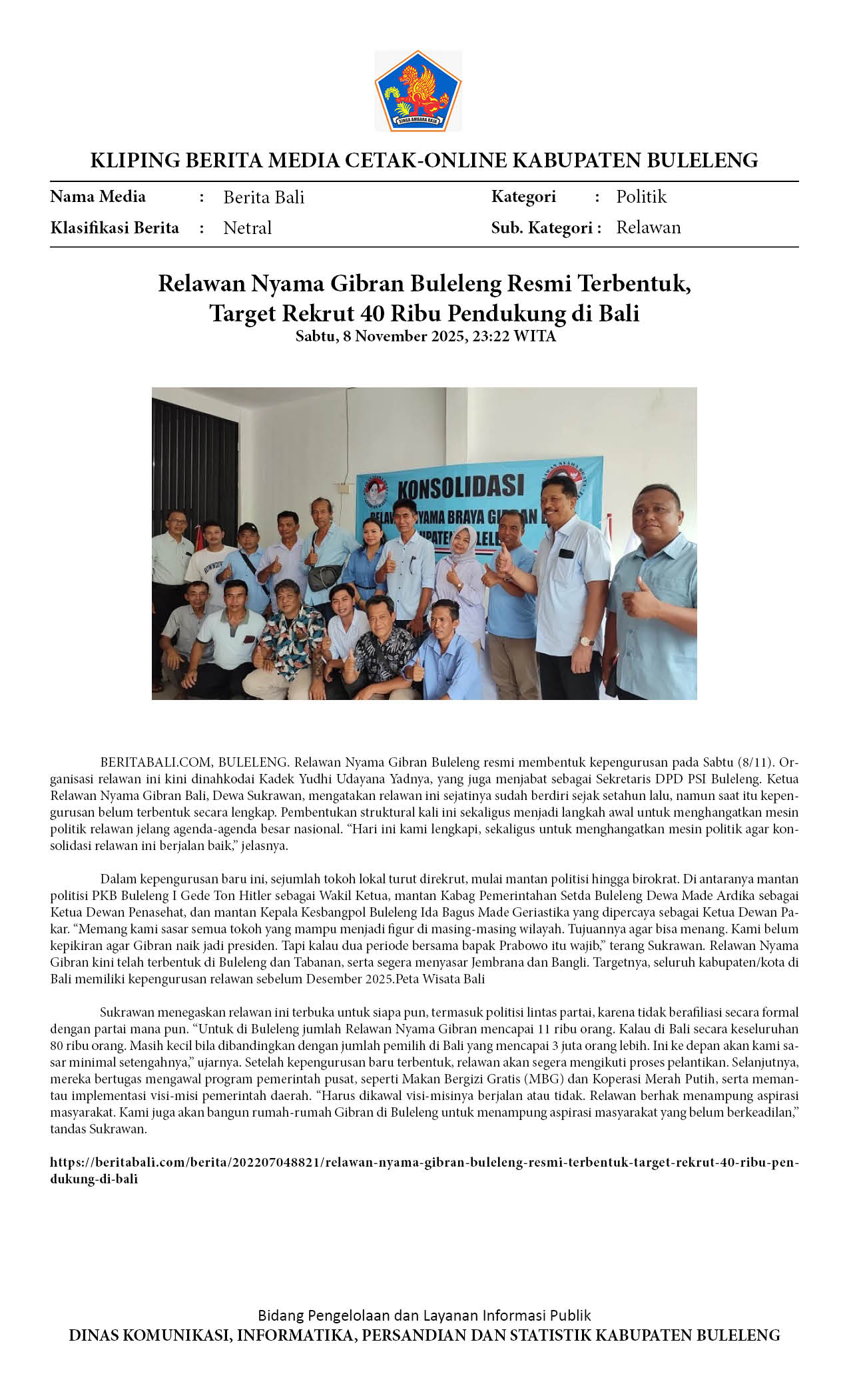 RELAWAN NYAMA GIBRAN BULELENG RESMI TERBENTUK, TARGET REKRUT 40 RIBU PENDUKUNG DI BALI