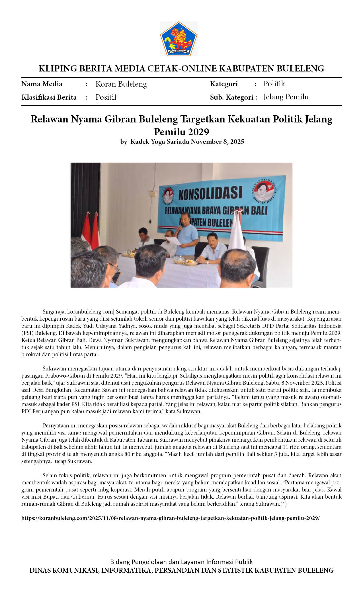RELAWAN NYAMA GIBRAN BULELENG TARGETKAN KEKUATAN POLITIK JELANG PEMILU 2029