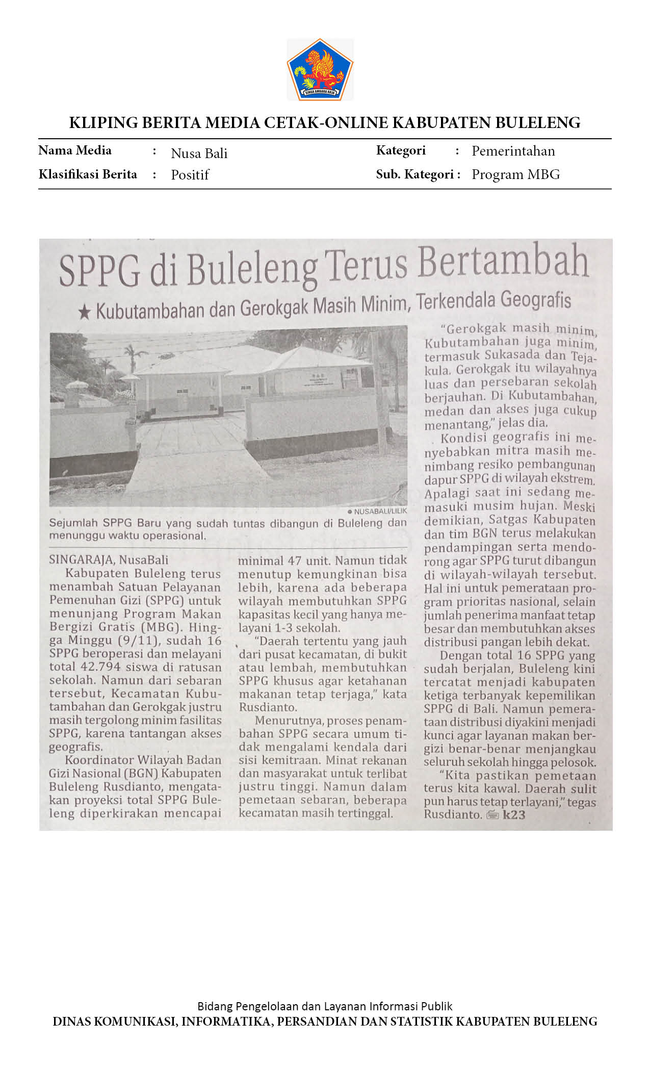 SPPG DI BULELENG TERUS BERTAMBAH