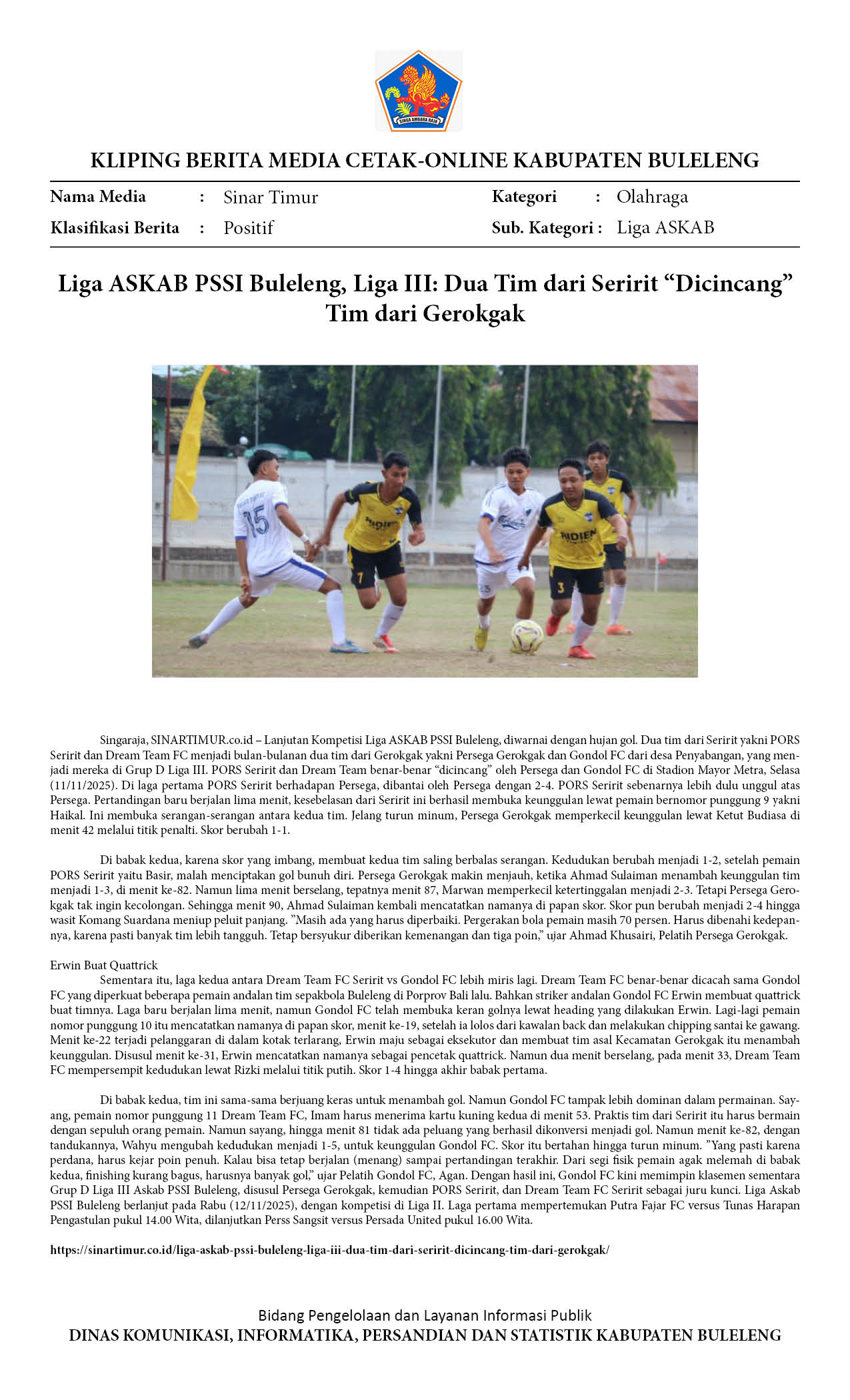 LIGA ASKAB PSSI BULELENG, LIGA III: DUA TIM DARI SERIRIT “DICINCANG” TIM DARI GEROKGAK