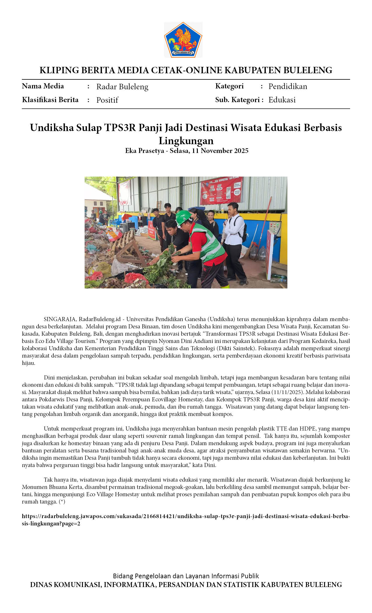 UNDIKSHA SULAP TPS3R PANJI JADI DESTINASI WISATA EDUKASI BERBASIS LINGKUNGAN