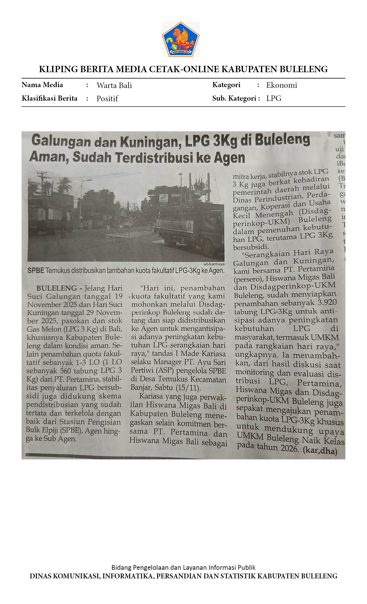 GALUNGAN DAN KUNINGAN, LPG 3KG DI BULELENG AMAN, SUDAH TERDISTRIBUSI KE AGEN