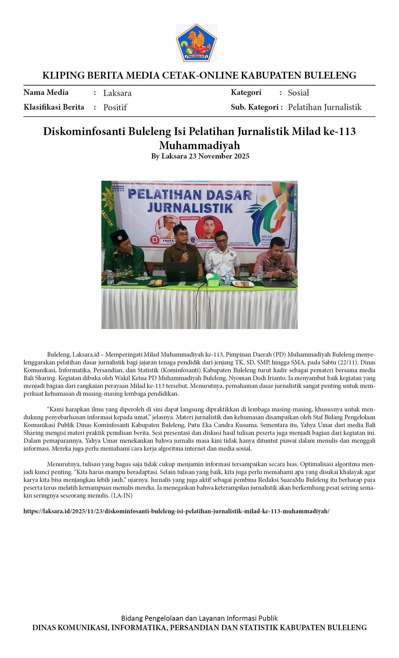DISKOMINFOSANTI BULELENG ISI PELATIHAN JURNALISTIK MILAD KE-113 MUHAMMADIYAH