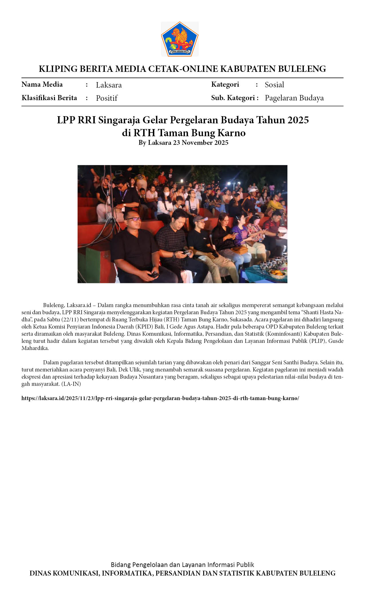 LPP RRI SINGARAJA GELAR PERGELARAN BUDAYA TAHUN 2025 DI RTH TAMAN BUNG KARNO