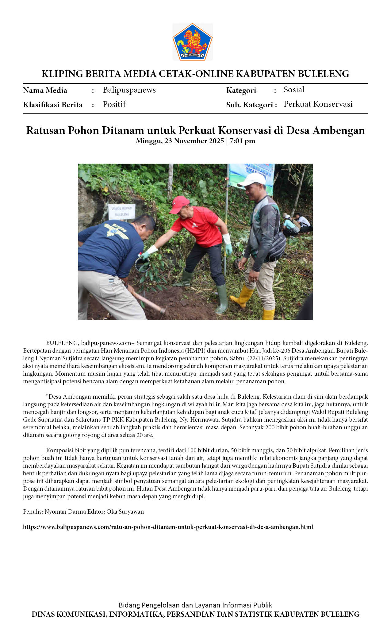 RATUSAN POHON DITANAM UNTUK PERKUAT KONSERVASI DI DESA AMBENGAN